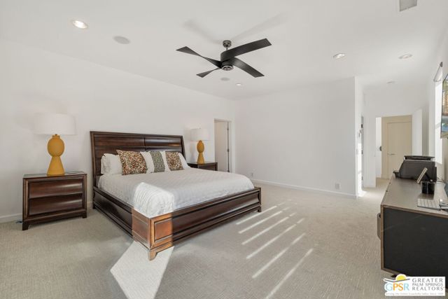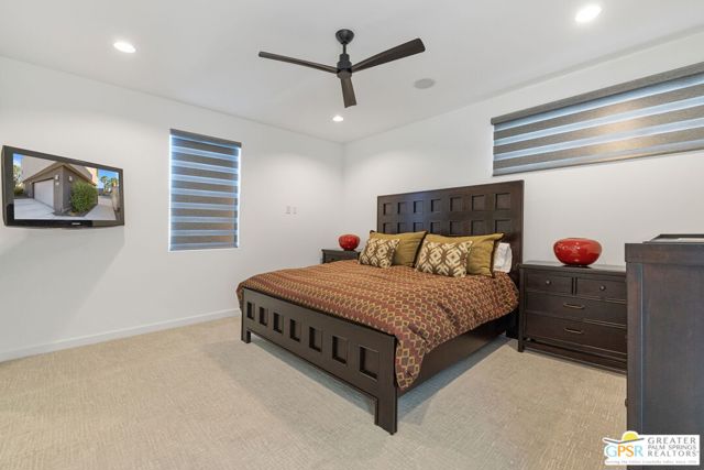 Morrison Magic in full effect. Modern design, exceptional outdoor living, and a dramatic San Jacinto mountain backdrop all come together at this ultra private residence in The Morrison. The vibe is crisp, clean, and effortless from the moment you enter, with indoor outdoor flow that places the pool and mountain views front and center. The blue tiled pool delivers instant wow factor with its spa to pool waterfall, generous sunning areas, and a modern stone fire pit that adds another striking focal point. All of it is framed by lush desert landscaping and complete privacy, creating an outdoor environment made for lingering, lounging, and entertaining in style. Inside, the modern aesthetic continues with tall ceilings, sleek finishes, and an easy, open layout. The sought after Plan 3 design offers three bedrooms and three baths, including a convenient first level bedroom and two ensuite bedrooms upstairs. Quality upgrades are found throughout, enhancing both style and function.Be it full time or seasonal, there is so much to love. Fee Land, you own it. The Morrison is gated, beautifully modern, and moments from both downtown and uptown. A rare combination of design, setting, and pure desert magic.