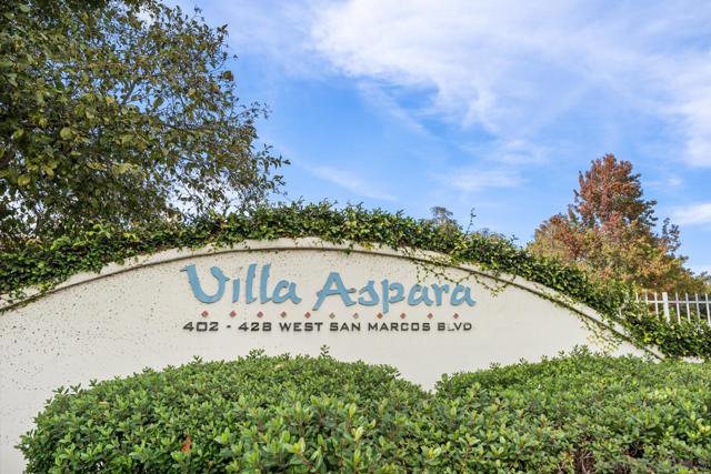 Step inside this bright, newly refreshed townhome tucked within the gated community of Villa Aspara. With only one shared wall, this corner-unit home feels private, open, and welcoming. Upstairs features two spacious dual primary suites, each with its own private bathroom, balcony, and plenty of natural light. New flooring and fresh interior paint create a clean, modern feel throughout. Downstairs, enjoy a cozy living area with a fireplace, a convenient half bath for guests, and direct garage access with in-unit laundry. Outside, your private patio is perfect for grilling or relaxing, while the community offers peaceful green spaces, a dog park, and a pool for sunny afternoons. Located in the highly rated San Marcos Unified School District, this home is just minutes from Cal State San Marcos, Palomar College, Discovery Lake Trail, and Double Peak Park, with easy access to local coffee spots and restaurants. This move-in ready home combines comfort, convenience, and community.
