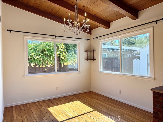 Through a beautifully landscaped garden, on the quietest part of Burbank Boulevard, we are proud to offer this mid-century estate for lease. The common living spaces feature beautiful wood floors and soaring ceilings with gorgeous beams, every corner suffused with natural light. The freshly updated kitchen features stainless steel appliances, gas range, and a lovely eat-in dining nook. The first oversized bedroom grants access to the private backyard with high ceilings and skylight, and the second bedroom features gorgeous built-ins surrounding the bay window with a bench overlooking the lush front yard. Your primary bedroom comes with three large closets, your own personal air conditioning if you don't need to cool the rest of the home, direct backyard access, and an attached bathroom with a spacious soaking tub and luxurious shower. The backyard oasis includes a mature avocado tree, complete privacy, and a two-car garage with laundry room attached. Come discover the perfect balance of home, location, and peace in Woodland Hills.