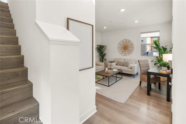 RARE ANGLED LOT | 1 OF 3 IN HARBOR POINTE | BUILT 2023 Step inside a home designed for convenience and coastal enjoyment in the gated community of Ponte Vista, adjacent to Rancho Palos Verdes. Built in 2023, this modern 3-bedroom, 2.5-bath home delivers advantages rarely found in older South Bay homes: up-to-date systems and energy-efficient design. It occupies a premium lot with a unique rotated orientation, 1 of only 3 within Harbor Pointe's 94-home neighborhood. Its angled placement creates practical separation from neighboring homes, enhancing natural light exposure while providing an inviting front courtyard, side storage, and greater privacy. Featuring over $80,000 in carefully selected upgrades, the 1,709 sq ft (BTV) interior showcases the home's functional elegance. LIVING & ENTERTAINING The home's tri-level floorplan creates distinct spaces for daily routines. Stylish RevWood plank flooring flows throughout, complemented by tile flooring in the primary and guest baths. The first floor features a flexible bonus room, ideal as a home office, guest quarters, or workout space. On the second level, the heart of the home naturally blends living, dining, and cooking spaces. The kitchen features Symphony Canvas cabinetry, quartz countertops, designer backsplash, and GE stainless appliances. A spacious island is perfect for everyday cooking or casual entertaining. This level also includes a laundry area with GE washer and dryer. RELAXATION & FUNCTION Upstairs, the owner's suite offers peekaboo views of the bridge and harbor from both the bedroom and walk-in closet. An art deco-style sliding barn door leads to the bathroom, which features dual vanities and a large, contemporary shower. Two additional bedrooms and another full bath round out the upper level. SMART & SUSTAINABLE FEATURES The home includes a fully owned 9-panel rooftop solar array (3.15 kWp), dual-zone smart thermostats, ceiling fans in the living room and all three bedrooms, a tankless water heater, and Ring video doorbell. The attached 2-car garage features a WiFi Liftmaster MyQ garage opener. PONTE VISTA RESORT-STYLE AMENITIES Residents enjoy exclusive community amenities, including security patrol, heated pool, spa, fitness center, dog park, BBQ area, fire pit, and nearby walking trails. Affordable HOA fees complement the location, offering easy access to beaches, shopping, dining, major freeways, and the vibrant waterfront redevelopment at West Harbor slated for 2026