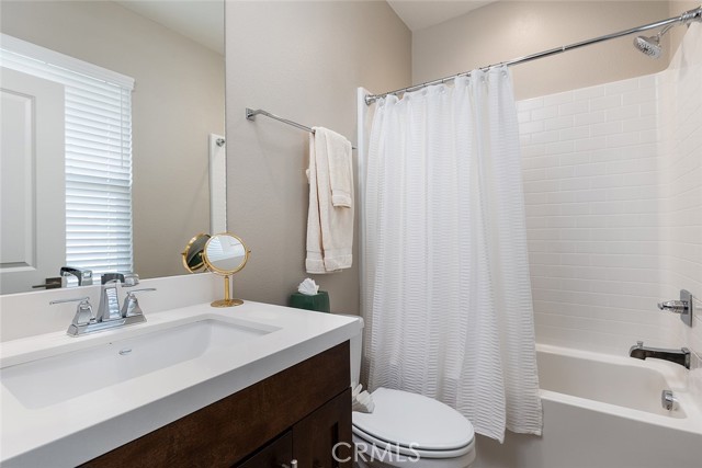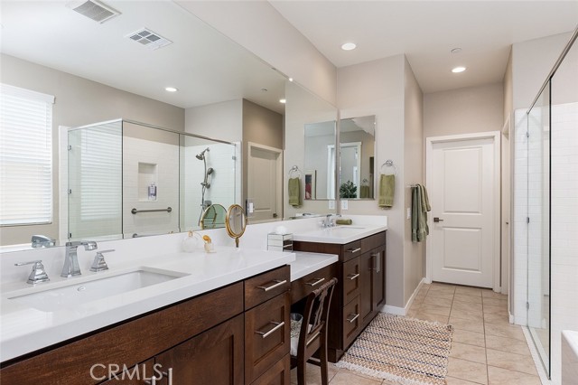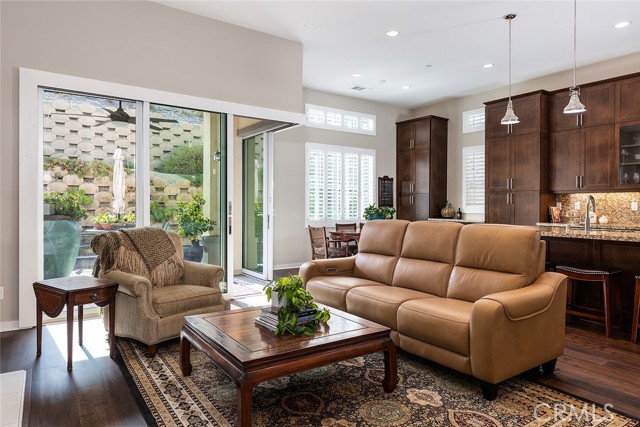 Welcome to this exceptional two-story single family residence located in the desirable Verano at Aliento community in the picturesque Golden Valley area of Santa Clarita! This home offers an ideal blend of comfort, style, and modern design. The main-floor primary suite features a spacious walk-in closet with custom built-ins and a luxurious bath with dual sinks, a walk-in tiled shower, and a separate soaking tub — creating a peaceful private retreat. Upstairs is a full secondary bedroom suite and a versatile bonus room with French doors that open to a private balcony showcasing expansive valley views — perfect for guests, extended family, or a home office. The gourmet kitchen includes a large center island, granite countertops, double-stacked cabinetry with under-cabinet lighting, GE appliances, three pantry closets, and a dining area with a wine refrigerator. The open-concept great room offers soaring ceilings, transom windows, and a fireplace flanked with custom built-ins. A five-panel corner stacked sliding glass door connects indoor and outdoor living, opening to a private patio and beautifully landscaped yard — ideal for entertaining or relaxing. Additional main-level features include a den or music room, powder room, and separate laundry room. Wide-plank luxury vinyl flooring, high ceilings, plantation shutters, recessed lighting, and abundant natural light beautifully complete the main level’s open and inviting design. Residents of the Verano at Aliento 55+ community enjoy access to two resort-style community centers with pools and jacuzzis, fitness centers, scenic trails, and convenient proximity to shopping, dining, and freeway access. Don’t miss the opportunity to call this exceptional property your new home!