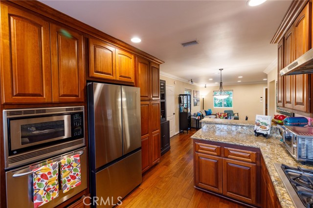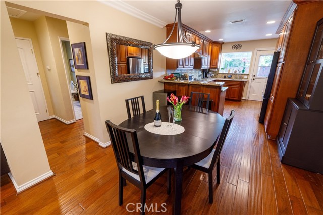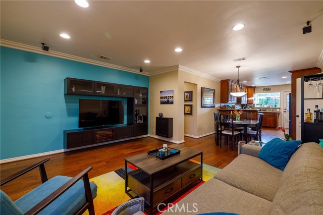 Nestled on a tree-lined street lies the perfect fusion of technology, sustainability, and convenience in this renovated 3-bedroom, 2 bath Encino Park gem. Step inside to a bright and airy living space that features large windows and an open floor plan that connects the living room and dining area to a kitchen with modern appliances, ample cabinet space and a breakfast bar. Entertain effortlessly, from casual dinners to family gatherings. The master bedroom is a tranquil retreat, complete with a spacious organized closet and an en-suite bathroom for added privacy and convenience. The two additional bedrooms are generously sized and perfect for kids, guests, or a home office. Smart home features include an app-connected front door lock, video doorbell, exterior cameras, and SimpliSafe security system. Control lighting, fans, and bedroom blinds from your phone, wall switches, or remotes. Track and control water usage with a smart irrigation controller and water meter leak detection device. Designed for today’s eco-conscious lifestyle, this property features thoughtful upgrades, including LED lighting, newer HVAC system, Google Nest thermostat, and drought-tolerant landscaping. Savor homegrown produce from the raised garden bed and dwarf citrus trees. The patio and barbecue area offer seamless indoor-outdoor living. The spacious, lush backyard has room to add an ADU for guests or potential rental income. The home is conveniently located steps from Trader Joe’s and minutes from the Sepulveda Basin Recreation Area and The Village at Topanga. It also offers easy access to the 101 and 405 freeways, park-and-ride, and Metro buses. Sleek, smart, and sustainable, this home redefines modern living in a highly-coveted Encino neighborhood.