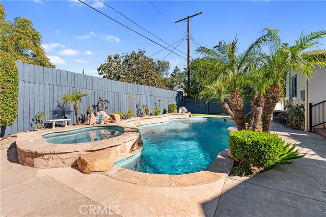 Encino Park home! 4 bedrooms, 3 baths and 2 of the bedrooms are primary bedrooms each with a private bath! Ideal for guests or multigenerational living. Beautiful pool & spa + a yard area! Fully paid for solar panels! Wonderfully maintained residence offers the perfect blend of comfort, style & functionality. Step inside to find smooth ceilings & dual pane windows throughout that fill the home w/natural light. Living room features crown & floor molding, hardwood floors & a true entry w/tile floor, creating a warm & inviting space for relaxing or entertaining. Kitchen is both stylish & practical, showcasing granite countertops, tile backsplash, a stainless-steel sink & faucet, 5-burner gas range & the refrigerator is included! Lazy Susan adds convenient storage & an osmosis water filtration system sits neatly under the sink. Good size dining room opens through a French door w/winglets to your private backyard oasis—perfect for enjoying meals while overlooking the pool & spa. The good-size primary suite #1 features a walk-in closet w/built-ins, ceiling fan, glass door to the patio & yard and an attached bathroom with double sinks & a tiled shower/tub combo. Primary Suite #2 offers a ceiling fan, double-door closet, and a private bath with a shower. Bedrooms 3 & 4 feature hardwood floors, a ceiling fan & share the hallway full bath. Other highlights: Indoor laundry closet w/washer & dryer included. Central air & forced-air heating. Raised foundation thruout! Mostly copper plumbing. 1/2 of the roof is new w/a 50-year guarantee. Sprinklers in the front & there is a lovely landscaped front yard. Cement driveway w/parking for 2 cars & a 1-car attached garage w/direct access. Storage shed included. Backyard is your own private retreat-w/a patio Trex deck & awning, blackberry bushes & hardscaped areas, perfect for outdoor entertaining. This move-in ready home truly has it all—modern upgrades, energy efficiency & a backyard designed for year-round enjoyment. Don’t miss the opportunity to make this wonderful home your own! In addition, sewer line was replaced from the street to the house. Fantastic location is close to Sepulveda Dam Recreation Area w/Lake Balboa, 3 golf courses, a Japanese garden & a 7 mile bike path. Nearby Balboa Park & Sports Complex w/sports fields, picnic areas, indoor & outdoor sports courts & much more that foster an active lifestyle. Also nearby Trader Joes' & a Dog Park! Plenty of restaurants & shopping along nearby Ventura Blvd.