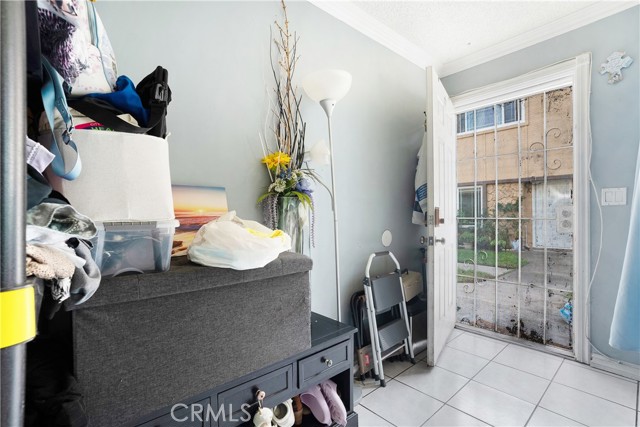 Welcome Home! Upon entering, you’re greeted by a spacious living room featuring elegant crown molding and classic tile flooring that flows seamlessly throughout the first level. Sliding glass doors lead to your private patio that's ideal for relaxing or entertaining. The kitchen offers plenty of character with its stylish tiled backsplash and open layout that connects beautifully to the outdoor space. A conveniently converted shower closet and a half bath on the main floor provide added functionality and comfort for guests. Upstairs, the primary bedroom has been thoughtfully divided into two separate rooms, offering extra privacy or flexible use as an office or nursery. The third bedroom is generously sized, and the upstairs bathroom provides ample storage. Enjoy access to a refreshing community pool, two dedicated parking spaces, and multiple on-site laundry facilities within the complex. Ideally located near freeways and shopping centers, this condo combines comfort, charm, and convenience in one inviting package.