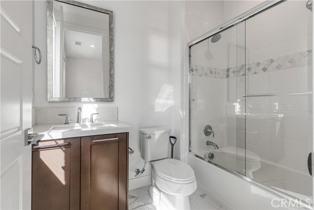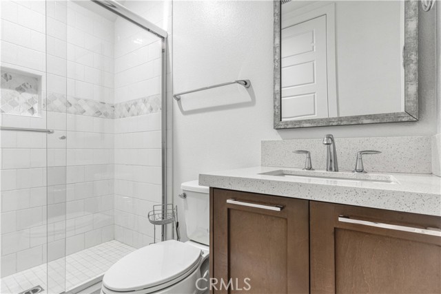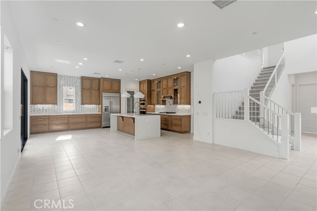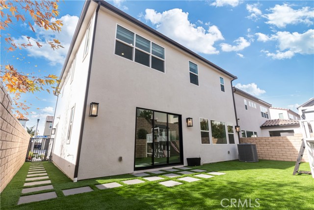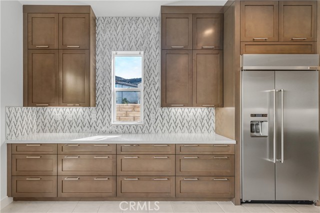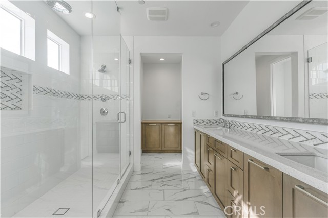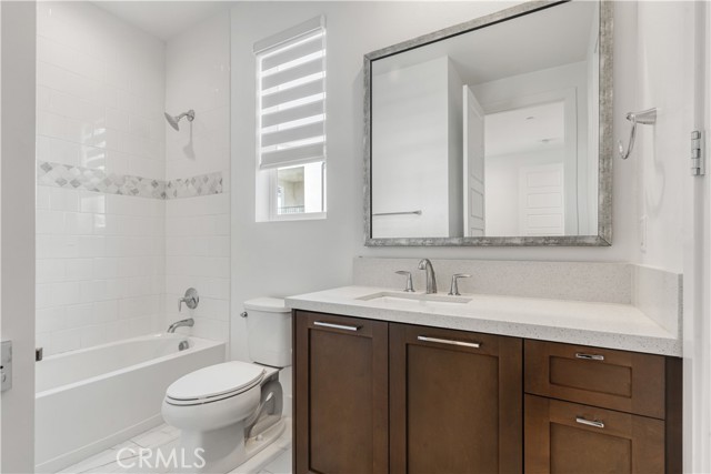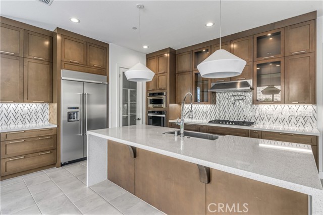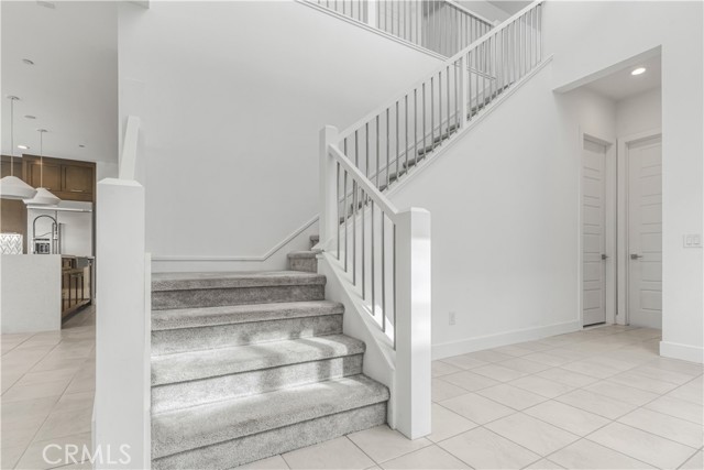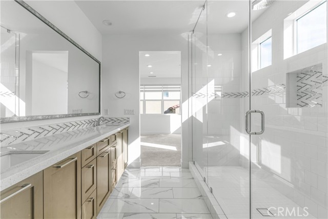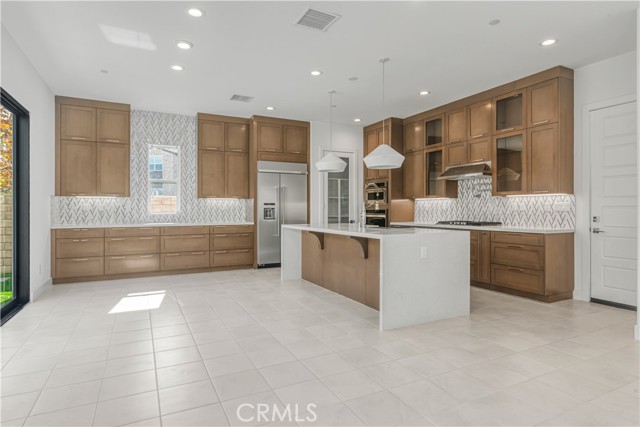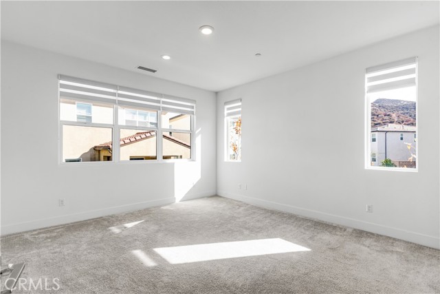 This luxurious, gated 5-bedroom, 4-bathroom home with a loft is tucked away in a serene neighborhood in Santa Clarita. Spanning 2,577 square feet, this home boasts a thoughtfully designed interior filled with high-end upgrades. As you enter, you’re greeted by beautiful tiled floors that flow throughout the open-concept first floor. Large windows with custom blinds allow natural light to flood the space, creating a bright and welcoming atmosphere. The chef-inspired kitchen is a standout, featuring stunning quartz countertops, built-in stainless-steel appliances, and an oversized sink. Recessed lighting casts a warm glow on the rich wood cabinetry and the expansive kitchen island, which boasts elegant waterfall stone edges. A bedroom and full bathroom on the main floor offer perfect accommodations for guests.Upstairs, an inviting loft area provides a cozy retreat, while the massive primary suite is an oasis of comfort. It offers dual vanities, a luxurious glass-enclosed shower, and a spacious walk-in closet with custom-built cabinets. The second bedroom comes with its own private bath, and the additional two bedrooms share a well-appointed full bathroom. For added convenience, an upstairs laundry room makes everyday chores a breeze.The backyard is an entertainer’s dream, featuring lush grass and a charming playhouse. Other notable features of the home include solar panels and direct access to the garage. Ideally located in one of Santa Clarita’s most sought-after communities, this home offers easy access to freeways, shopping, dining, and top-rated schools.