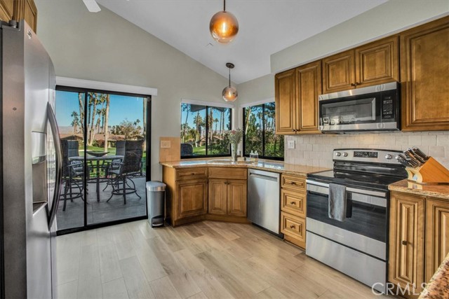 Welcome to your desert retreat at The Lakes Country Club! This spacious and beautifully updated Abilene floor plan offers the perfect blend of comfort, privacy, and style. The bright, open layout features two bedrooms, a den, and two bathrooms — thoughtfully designed for relaxing or entertaining. Step inside to find luxury vinyl flooring throughout and a remodeled kitchen showcasing granite counters, stainless steel appliances, and custom cabinetry. Both bathrooms have been tastefully upgraded with high vanities, elegant lighting, and modern finishes. The primary suite includes a custom cedar closet, while fresh paint, updated hardware, baseboards, and lighting fixtures give the home a polished, move-in-ready feel. The central atrium fills the home with natural light and fresh air, creating a tranquil space that enhances the den’s inviting atmosphere. Outside, the expanded golf course patio — complete with porcelain tile flooring and a built-in grill — is the perfect spot to unwind or host friends under the desert sky. At The Lakes, every day feels like a getaway. Enjoy the vibrant social scene at the newly renovated Clubhouse and Health & Wellness Center, or stay active with Tennis, Pickleball, Pop Tennis, Bocce, and 44 sparkling pools and spas. Golf enthusiasts will love the optional membership to the 27-hole championship course. Come experience the best of desert living — where every detail has been designed for relaxation, recreation, and connection. Call today to schedule your private tour!