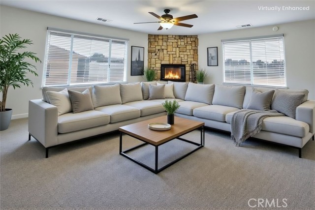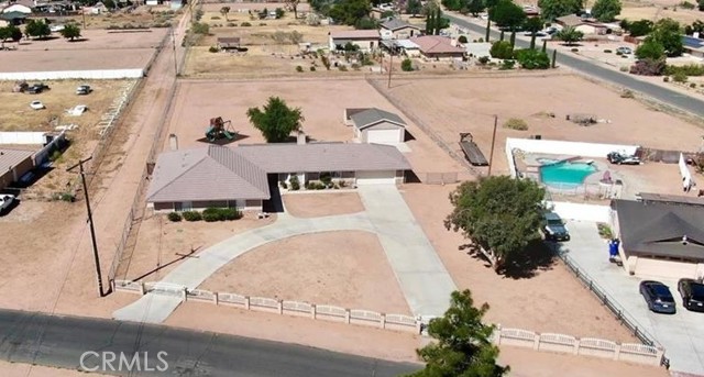 Welcome to The Estate, a well-kept Apple Valley home with plenty of space to live and spread out. Two electric gates open to a wide circular driveway that makes access easy for multiple vehicles, RVs, boats, and desert toys. Inside, the home features two family rooms, four bedrooms, and three bathrooms across 2,776 square feet. The updated kitchen includes white cabinetry, quartz counters, a farmhouse sink, and a large breakfast bar. There is also a separate formal dining room and generous storage throughout. All bedrooms are comfortably sized, including a large primary. The west wing has its own family room with a fireplace, along with a bedroom and bathroom that work well for extended family or rental use. Outside, the 1.2 acre lot includes a covered patio, a play area with rubber mulch, a storage shed, and excellent parking options. There is an attached two car garage along with a detached two car garage with power and partial drywall that offers strong potential for an ADU, workshop, or extra storage. A new septic system provides peace of mind. Located near schools, shopping, and Apple Valley Country Club, this single level home offers great space, function, and flexibility in a layout that is easy to live in.