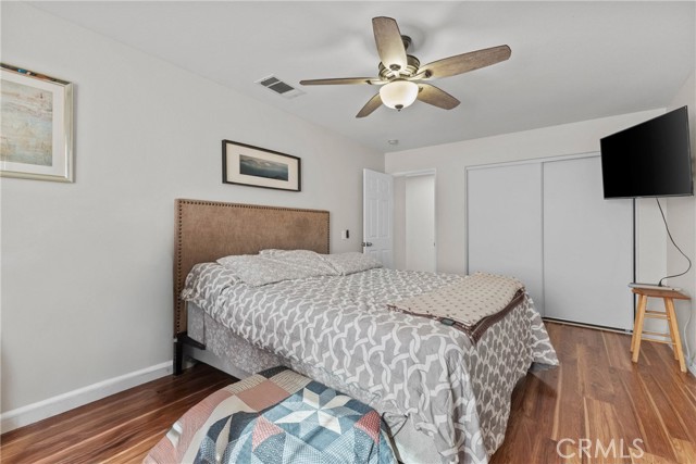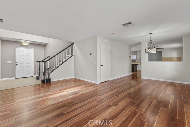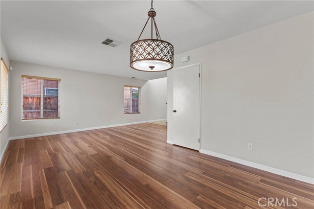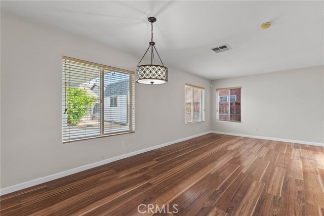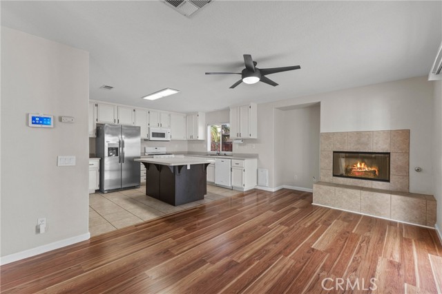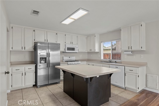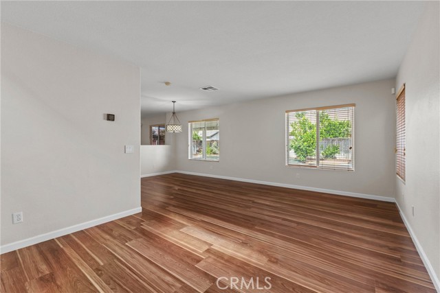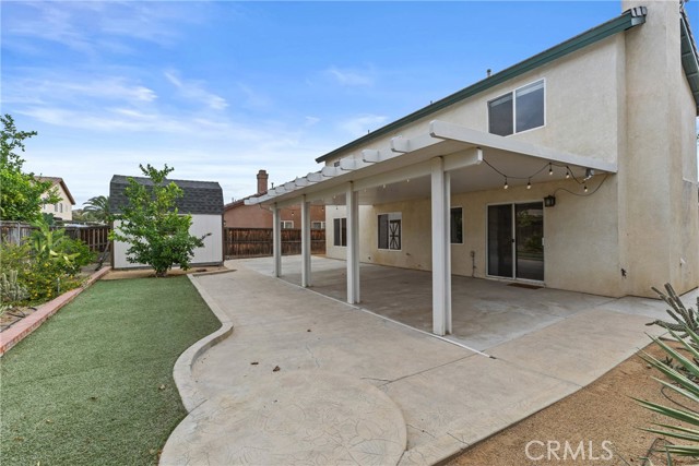 Welcome home to this spacious and inviting 4-bedroom, 3-bath beauty nestled in a friendly West Hemet neighborhood. With no HOA fees, this home offers comfort, convenience, and room for everyone to grow. Inside, you’ll find an open and functional floor plan with plenty of natural light and lots of storage throughout. The kitchen and dining area flow together seamlessly, featuring a cozy fireplace that makes family meals and gatherings extra special. The pantry adds additional space for all your kitchen essentials. The kitchen also offers tile flooring, while the rest of the home features easy-care laminate floors for a clean, modern look. A downstairs bedroom is perfect for guests, in-laws, or a home office. Step outside and enjoy the covered backyard patio, ideal for BBQs and family get-togethers. The large storage shed provides plenty of space for tools, bikes, or hobbies, and both the front and backyard are low maintenance, giving you more time to relax and enjoy. With a two-car garage and a great location close to schools, parks, shopping, and freeway access, this home checks all the boxes for comfortable family living.