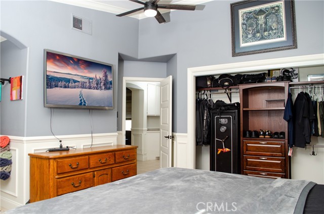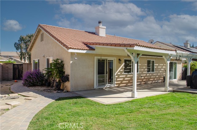 Welcome to this beautifully maintained single-story home on a spacious 10,196 sq. ft. lot, ideally situated on a quiet cul-de-sac in Canyon Country. Featuring 3 bedrooms and 2 bathrooms across 1,570 sq. ft., this inviting residence offers an open-concept layout with high ceilings, recessed lighting, crown molding, elegant wainscoting, and upgraded dual-pane windows that fill the home with natural light. The stylish kitchen with matching stainless steel appliances flows seamlessly into the living and dining areas, creating an ideal space for entertaining. The primary suite offers double closets—including a walk-in—and direct access to the backyard, along with a spa-inspired en-suite bath featuring dual sinks, a soaking tub, and a glass-enclosed shower. Enjoy outdoor living at its best in the private backyard retreat with mature fruit trees, organic garden beds, a covered patio, built-in fire pit, and solid block walls with custom gates for privacy and security. Additional highlights include full-house PEX re-piping, leased solar panels, a new high-efficiency AC unit, tankless water heater, insulated epoxy-finished garage, and a large Tuff Shed with a concrete foundation. With no HOA or Mello-Roos fees and a prime location near top-rated schools, parks, shopping, dining, and easy freeway access, this home perfectly blends comfort, style, and convenience for modern California living.