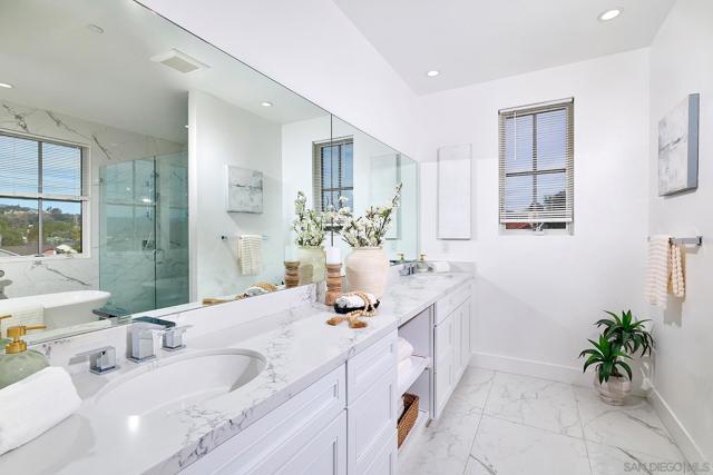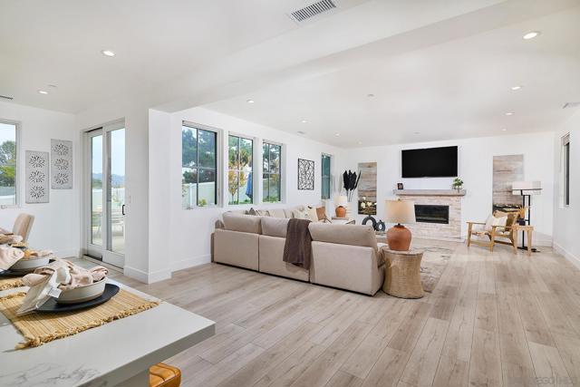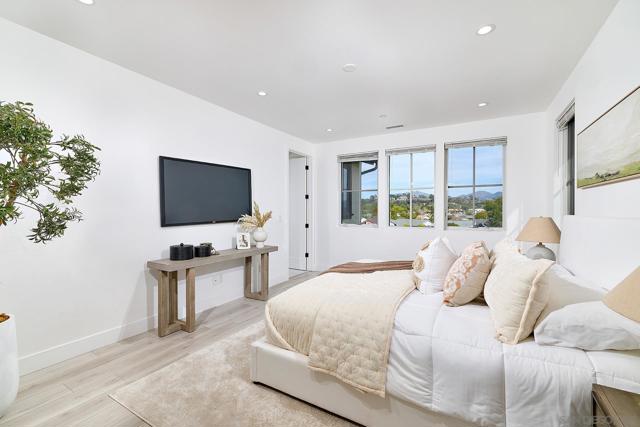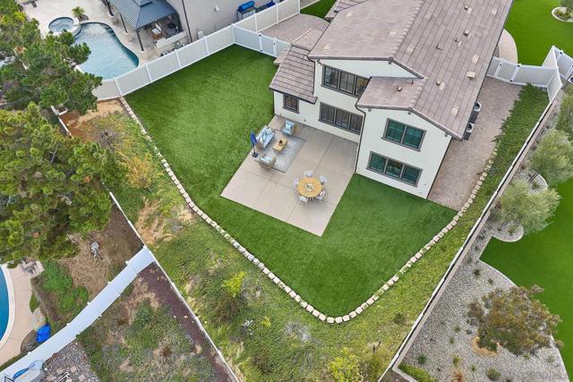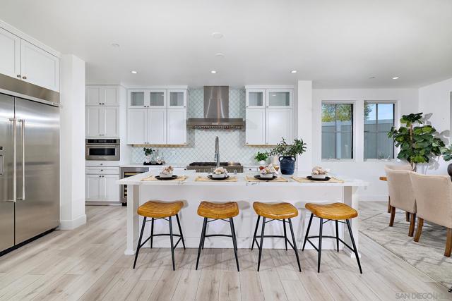 Don’t miss this exceptional newer home set on a private cul-de-sac in Poway! This beautifully appointed two-story residence offers 4 bedrooms, 4 bathrooms, and a formal powder room, designed for modern comfort and elevated living. Step inside to an effortless indoor–outdoor flow, high ceilings, and a light-filled, inviting atmosphere. The designer gourmet kitchen is equipped to rival estate homes, featuring a custom tile backsplash, top-of-the-line stainless appliances including a 48" KitchenAid gas range and built-in 48" refrigerator, custom farmhouse sink, premium cabinetry with raised overhead glass doors, a wine chiller, water softener system, LED lighting, and refined finishes. The kitchen opens seamlessly to the spacious great room—perfect for family gatherings and entertaining. A convenient downstairs bedroom with its own full bath offers ideal versatility for guests or multi-generational living. Upstairs, you’ll find the remaining ensuite secondary bedrooms, each with their own private bath, along with a large and thoughtfully designed laundry room. All bathrooms feature custom-tiled showers and quartz counters. The luxurious primary suite showcases a spa-inspired bath with a freestanding soaking tub, generous walk-in shower, dual vanities, an upgraded water closet, and an impressive walk-in closet. The expansive backyard is an entertainer’s dream, beautifully finished with turf and hardscape, perfect for relaxation, outdoor dining, and gathering surrounded by fruit trees and tranquil valley views. Located within the award-winning Poway Unified School District and offering No Mello-Roos, well located near shopping, schools and freeway access.