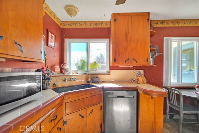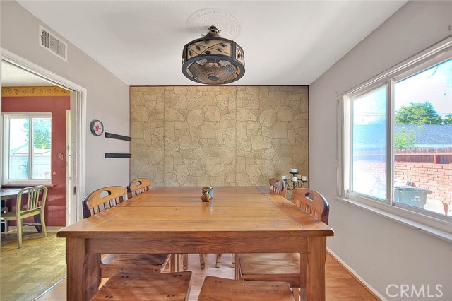 Welcome to 909 W Flora Street, a warm and inviting single-story home overflowing with charm, character, and potential. Perfectly situated in one of Ontario’s most established neighborhoods, this 3-bedroom, 2-bath residence blends timeless mid-century craftsmanship with modern efficiency, offering the kind of home that feels instantly comfortable from the moment you step inside. The spacious living room features a beautiful white-brick fireplace, smooth ceilings, and a large picture window that fills the space with natural light. Barn-style sliding doors open to the formal dining area, accented by a rustic stone feature wall that creates the perfect backdrop for gatherings and memorable meals. The kitchen is rich with personality — showcasing original wood cabinetry, curved tile countertops, and a cozy breakfast nook overlooking the backyard. A bright laundry area sits just off the kitchen with convenient exterior access. Both bathrooms offer a clean, simple layout with a bright and functional design — the perfect foundation to easily refresh or customize to your own taste. Each bedroom provides generous space, ample storage, and plenty of natural light. Energy-saving upgrades include a financed solar system, tankless water heater, and whole-house water softener for year-round comfort and reduced utility costs. The detached two-car garage and large lot present exciting possibilities — build a detached ADU, convert the existing garage for extra income or multi-generational living (buyer to verify), or simply enjoy the long driveway ideal for RV or boat parking. The expansive backyard offers endless potential for outdoor entertaining, gardening, or creating your dream retreat. Additional highlights include a gated front yard with mature landscaping, dual-pane windows, and a prime location near Historic Euclid Avenue, Cucamonga-Guasti Park, shopping, schools, and Ontario Airport. Combining character, location, and opportunity, 909 W Flora Street is the perfect home for buyers seeking space, versatility, and future upside. Homes like this don’t come around often — don’t miss it!