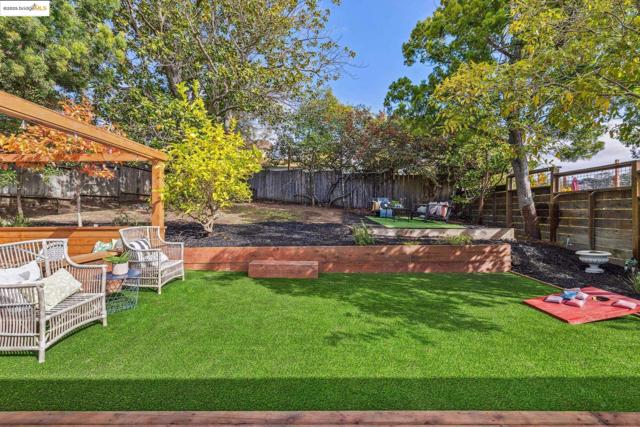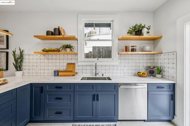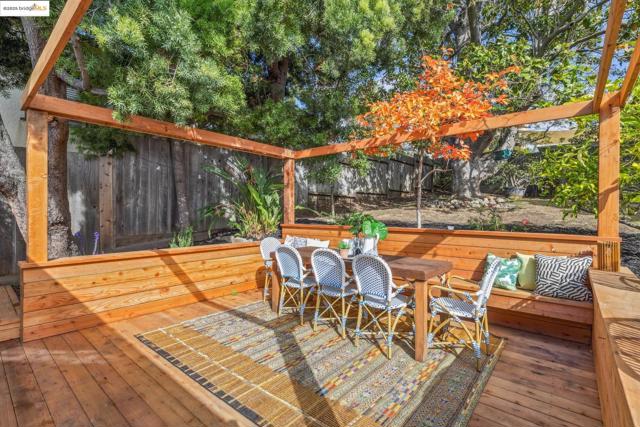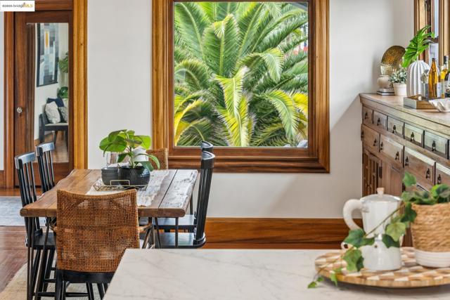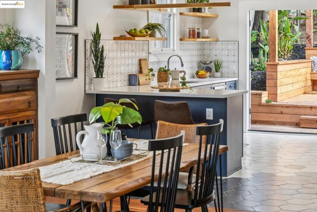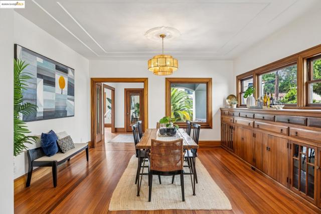 Welcome to 574 Weldon Avenue in the Lakeshore neighborhood, where timeless Oakland craftsmanship meets modern sophistication. The sunlit living room showcases a classic tiled fireplace, detailed inlay ceilings, original medallions, and beautifully preserved unpainted wood trim. Rich hardwood floors flow throughout, leading to a stunning dining room anchored by an original built-in hutch, a true centerpiece of historic charm. The thoughtfully updated kitchen features sleek soft close cabinetry, modern appliances, open shelving, and hexagonal tile flooring. French doors open to a private outdoor retreat complete with a spacious deck, turf lawn, and drought-tolerant gardens, ideal for entertaining or unwinding in the California sun. Head back inside to the spacious hallway that leads to 3 spacious bedrooms and 2 spa-inspired bathrooms, contemporary fixtures, and designer finishes. A convenient laundry chute connects to the laundry room, while the lower level includes a workshop and one-car garage + a pit for car enthusiasts. Just moments from Lake Merritt, Grand Lake Theatre, and a vibrant mix of shops, cafés, farmers markets and restaurants along Lakeshore & Grand Avenue. With easy access to 580, Berkeley, and San Francisco.