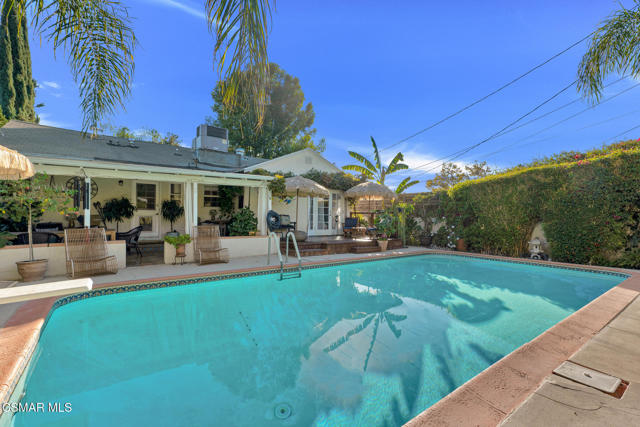 Welcome to your boho-inspired sanctuary in the heart of Lake Balboa. This adorable 3-bedroom, 1-bath home radiates warmth, light, and tranquility from the moment you arrive behind the white-picket gated fence and peaceful front-yard fountains. Inside, sunlit rooms and rich wood floors create a sense of calm and connection, blending cozy comfort with effortless California style. The living and dining areas invite relaxation and quiet evenings, while the spacious primary bedroom opens directly to the sparkling pool area--a perfect retreat for morning coffee, lazy afternoons, or evenings under the stars. Every corner of this home feels intentional, balancing bohemian charm with modern simplicity. The front garden and fountains set a tranquil tone, while the backyard offers privacy, beauty, and the promise of easy entertaining or peaceful solitude. This home captures the essence of Southern California living--bright, peaceful, and endlessly inviting. A true Lake Balboa gem.