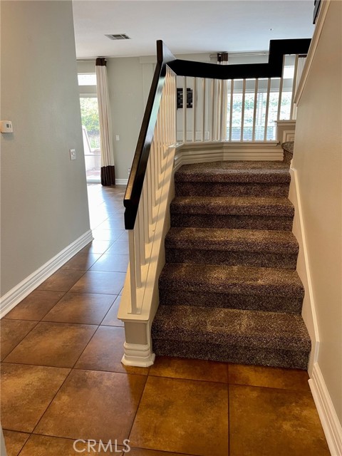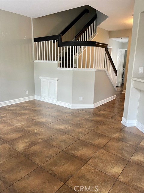 Beautiful upgraded unit with a rare oversized attached 2 car garage and large private patio that faces the greenbelt. Numerous upgrades include 18" porcelain tile flooring on entire first floor, large 4.25" baseboards and laminate flooring upstairs. The remodeled kitchen features white quartz countertops, repainted cabinets, stainless steel appliances and subway tile backsplash. The ample primary suite boasts an updated ensuite bath with double sinks, brushed nickel fixtures, quartz counters, closet built-ins and mirrored closet doors. The secondary bedroom also has an ensuite bath and mirrored closet doors. Additional amenities include a convenient indoor laundry room, storage shelves in garage, ceiling fans, a gas log set in fireplace, 2 inch wood blinds, pavers on front porch, and exterior keypad for garage entry. Just steps away from the community pool and spa, including access to Santa Margarita Beach Club and award winning schools. Available for December 15th move in.