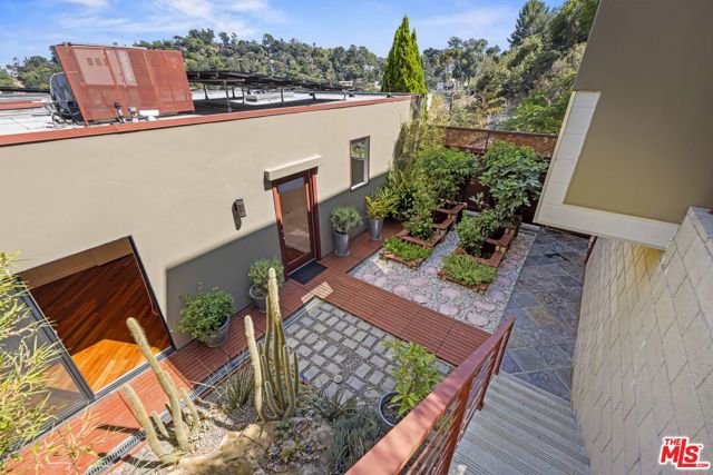Welcome to Casa Alta, your serene perch above it all in the hills of Silver Lake Heights, a one-of-a-kind architectural compound where privacy, design, and inspiration meet. Available now for lease is a 3-bedroom, 3-bathroom main residence. A detached studio/loft is offered at an additional negotiable rate (perfect for those seeking an additional private space for an office, for creative work, guest quarters, vlogging, yoga, dance, podcast, etc). Inside, the home is rich with detailed Brazilian Tigerwood floors, slate tile, handcrafted Blum cabinetry, and a chef's kitchen outfitted with top-of-the-line appliances (Fisher & Paykel, Bosch, and more). The open living area flows to a wraparound balcony with those quintessential Silver Lake mountain and city views perfect for morning coffee, golden hour wine, or both. Upstairs, the primary suite is a private retreat with its own fireplace, spa-worthy bathroom (steam shower, hammered copper sinks, oversized iron soaking tub), and a cedar-lined walk-in closet that actually smells like a spa. Two more bedrooms on a top floor, one of them opens to private outdoor spaces and garden paths, creating quiet moments throughout. Detached from the main house, the studio loft offers two sunlit levels, a half bath, spiral staircase, and separate entrance ideal for working from home, painting, yoga, or giving your houseguests just enough distance. And here's the wild card that makes this offering even more special: the adjacent vacant lot (over 9,000 sq ft) can also be leased for just $750/month, a rare bonus space for gardening, lounging, or simply enjoying the bragging rights. Additional amenities include a 2-car garage, 30-panel solar system, water filtration, video surveillance, and custom window treatments. All of this, just minutes from Whole Foods, Sunset Junction, coffee shops, live music, restaurants, fitness studios and anything else you need for a pleasant and luxurious life.