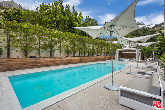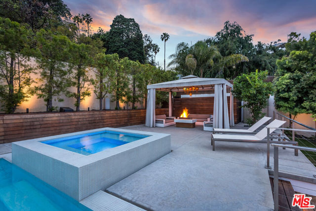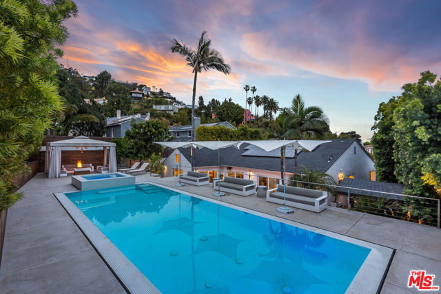 Available for short term rentals of 28 days or less. Fully furnished and located a stone's throw away from the heart of the Sunset Strip, this contemporary single-story home is an entertainer's dream with a massive yard and city views. The spacious open floor plan has phenomenal indoor/outdoor flow to the beautiful backyard replete with zero edge pool, lounging cabana, multiple exterior fireplaces, full outdoor kitchen with Sub-Zero/Wolf appliances, and mature tropical landscaping. The oversized owner's suite features high vaulted ceilings and ensuite bath fit with steam shower and jacuzzi tub. Control 4 smart home, automated pool system, and full surround sound theatre in the living room.