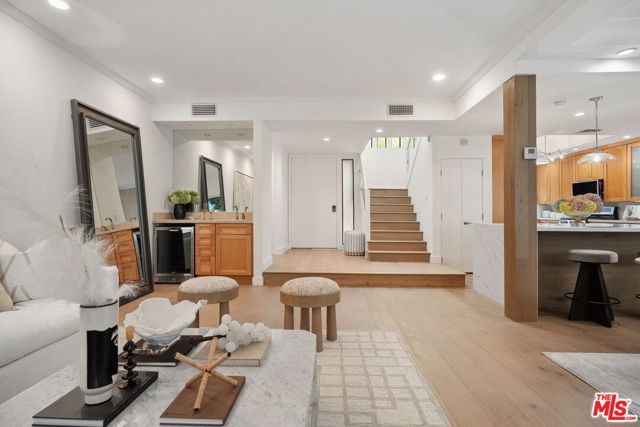 Tucked behind private gates in one of Beverly Hills' most coveted locations, this newly remodeled contemporary three-story townhome is a stunning showcase of modern luxury and design. Meticulously crafted, the residence boasts four spacious bedrooms, each adorned with sleek, high-end finishes that blend comfort with sophistication.The open-concept main level is a masterclass in style, featuring wide-plank light oak wood floors, a striking stone fireplace, and a custom wet bar perfect for effortless entertaining. The gourmet kitchen is a true centerpiece, highlighted by a waterfall quartz island, designer cabinetry, and premium appliancesseamlessly marrying form and function.Upstairs, the grand primary suite is a tranquil retreat flooded with natural light. It offers a large walk-in closet and a spa-inspired bathroom complete with a Jacuzzi tub, double vanity, and an oversized showeryour own private wellness escape.Additional highlights include access to a resort-style community pool and spa, and a secure, ground-level community garage with three reserved parking spaces, direct unit access, and an electric vehicle (EV) charger, offering unmatched convenience and sustainability.Ideally located just moments from world-class dining, luxury shopping, charming cafes, tennis courts, and the beautifully landscaped La Cienega Park, this exceptional residence offers the very best of upscale urban living in Beverly Hills.