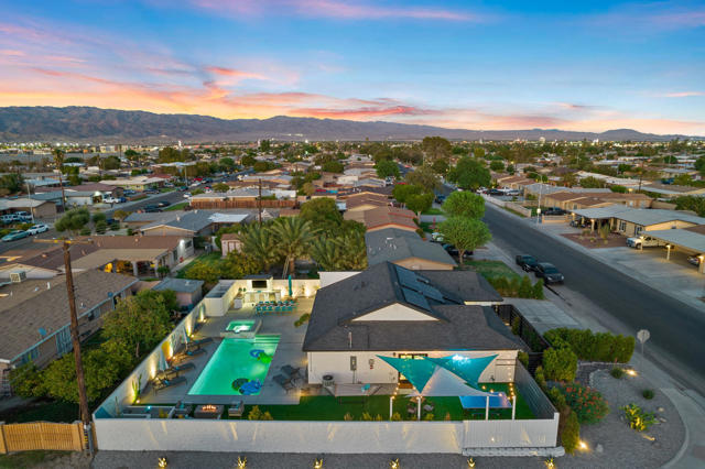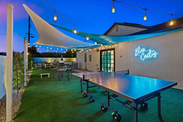 This Short Term Rental Property has every possible upgrade you could want to entertain guests as an Airbnb or vacation home! Welcome to the ''Blue Cactus House'', where you'll understand it's name right as you approach the front door. This 5 bedroom, 3 bathroom home is situated on a large corner lot, ideal for guests enjoying themselves into the night. Every detail in the home has been designed to provide the most memorable Airbnb or VRBO experience, whether it's the colorful wall murals, the waterfall island in the open floorplan kitchen, or the Junior ADU (JADU) with separate kitchen and sleeping space. And that's not even the best part, because wait 'til you see the backyard. The recently built and newly plastered pool is framed perfectly by a state-of-the-art entertainment system and built-in grill space. Soak up the stars in the hot tub or cozy up next to the firepit, the options to enjoy yourself are endless! Property is being sold fully-furnished, turnkey, and has generated over $100k in revenue in the past 24 months, and Coachella is already SOLD OUT for 2026t. Priced to sell quickly, this home is a 'cash-cow' and the results speak for themselves.