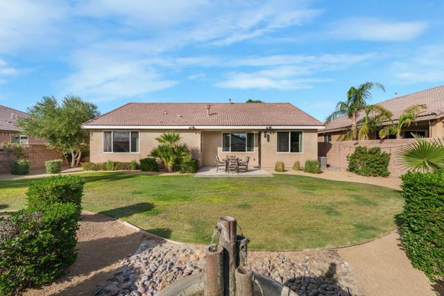 Welcome to 84317 Falco Ct., a beautifully maintained former model home offering 2,284 sq. ft. of elegant living space in the sought-after Aliante gated community of Indio. This residence features 4 bedrooms, 3 bathrooms and office/den providing a perfect blend of comfort and functionality for modern living. Attached is a stunning apartment sized casita with its own private entrance, kitchenette with full-size refrigerator, washer, dryer, spacious bedroom with large walk-in closet and a full-size bathroom making it ideal for guests, extended family, or as additional income as a rental (information provided upon request).Step inside to discover a bright and open floor plan thoughtfully designed for contemporary living. The inviting living area is anchored by a cozy fireplace, creating the perfect setting for relaxing evenings or casual gatherings. The stylish kitchen outfitted with granite countertops, grand island, pantry, abundant cabinetry with pull-out shelves adds a functional layout that makes meal preparation and entertaining a pleasure. The serene primary suite offers a private retreat with an en-suite bathroom with dual sinks, shower, bathtub and large walk-in closet with built-in organizers. Garage can house 2 cars plus ample storage and/or golf cart. Additionally included is a tankless water heater, 220 Volt Plug and an A/C mini split to maintain temperature control for tinkering around the garage or perhaps enjoying working out with your own personal gym equipment.Outdoor living is seamless thanks to one of the largest lots in the community 9,148 sq. ft. surrounded by low-maintenance landscaping. Whether you envision it as a haven for children and pets, a space for outdoor dining or perhaps to visualize your own private oasis would only add to a versatile extension of this exceptional home.