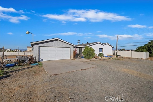 *** LOW PROPERTY TAX RATE *** NO HOA *** RV ACCESS *** BRING YOUR TOYS! *** BUILD AN ADU *** Welcome to 16915 Wood Rd., Riverside — an affordable 4-bedroom home on a sprawling 34,848 sq ft lot within one of Riverside’s most desirable school districts. This 433A-certified manufactured home (permanent foundation) offers 2,016 sq ft, 4 bedrooms, 2 baths, a den/office, and a 440 sq ft detached 2-car garage, delivering exceptional value and versatility. Step inside to an inviting floor plan featuring a spacious living room with a freestanding wood-burning fireplace, perfect for cozy evenings. The adjoining dining area flows into the upgraded kitchen, highlighted by granite countertops, abundant cabinetry, and direct access to the inside mud/laundry room—a practical space ideal for storage, organization, and everyday function. The primary bedroom suite is generously sized and offers a private retreat, while three additional bedrooms plus a flexible den/office provide options for families, guests, hobbies, or work-from-home needs. While the home may benefit from fresh paint and minor cosmetic updates, several major improvements have already been completed. Upgrades include a Cooper Plumbing full repipe (2010), brand-new roofs installed in December 2023 on both the home and the detached garage, and newer vinyl fencing—providing peace of mind and long-term durability. Outside, this expansive, nearly one-acre lot unlocks endless possibilities. The wide-open space is perfect for RV or boat parking, work trucks, toys, equipment, gardening, a future pool, workshop, or a potential ADU (buyer to verify). The large usable yard and detached garage enhance privacy, functionality, and future potential. Located within the highly rated Mark Twain Elementary, Miller Middle, and Martin Luther King High School boundaries, this home is an excellent long-term investment for buyers seeking space, convenience, and overall value. With its permanent foundation, the property also qualifies for a wide range of financing options. Opportunities like this are rare. Schedule your private showing today and bring your written offer. This home is ready for your personal touches—and ready for its next owner’s vision.