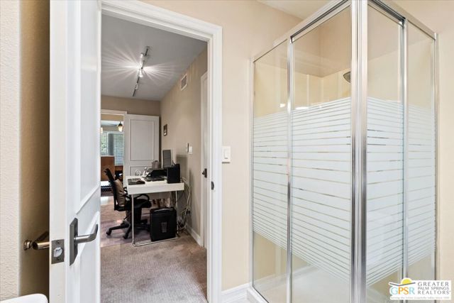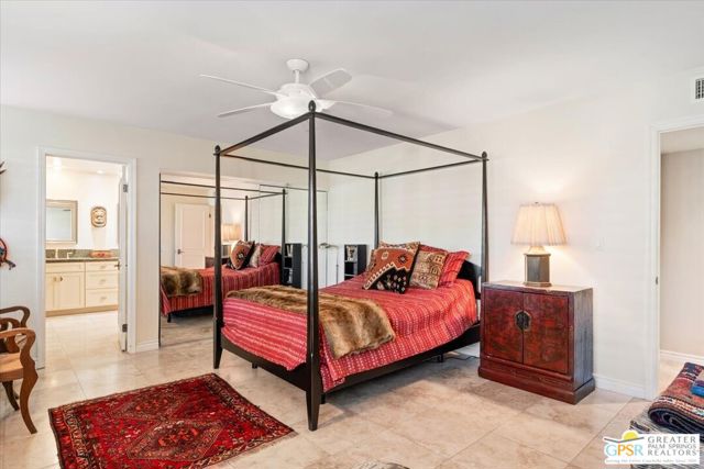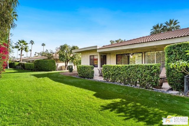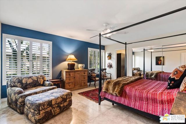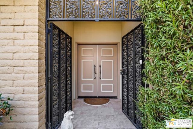 An amazing find in South Palm Springs on fee land! This contemporary 3 ensuite bedroom condo in Sunrise East underwent a quality full renovation and has been impeccably maintained since with travertine floors in main living areas and primary ensuite. The atrium courtyard was enclosed and now serves as a large formal dining room. Solar tubes in the primary bath, second guest bedroom, and dining room as well as the large kitchen and primary bath skylights amplify the light throughout the home. The kitchen features beautiful honey colored wood cabinetry, stainless appliances including new dishwasher, wine fridge, and granite countertops. The living room has a wet bar and leads out to the rear, North-facing patio - perfect for morning coffee or evening cocktails. There are plantation shutters throughout the home and built-in storage in the attached 2-car garage. This low density community is in a quiet location yet offers easy access to shopping, dining, and Downtown Palm Springs. This home would be an ideal weekend or seasonal retreat or full-time residence. A must see! Offered partially furnished.