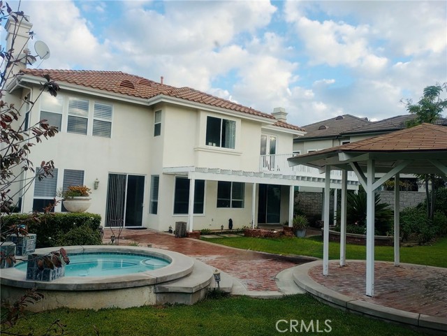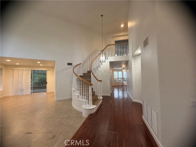 Experience luxury and comfort in this elegant 5 bedroom residence, complete with a private office off the master suite. From the moment you enter, you're greeted by a dramatic open living space with soaring cathedral ceilings and breathtaking views of the lush background. The home features rich hard wood flooring and a spacious light-filled kitchen with a breakfast nook and French doors that open to an entertainers paradise- a beautifully landscaped yard with a sparkling spa, gazebo and ample space for gatherings. The main floor boasts a generous bedroom and full bath, ideal for guests. The primary suite is a true retreat, featuring a private office or bedroom, dual walk-in closets and a beautiful bathroom. Enjoy the best of Southern California living with a remodeled community clubhouse and pool, all nestled within a serene cul-de-sac. Conveniently located near freeways and highly regarded Villa Park schools, this home offers elegance, functionality and a lifestyle of ease.
