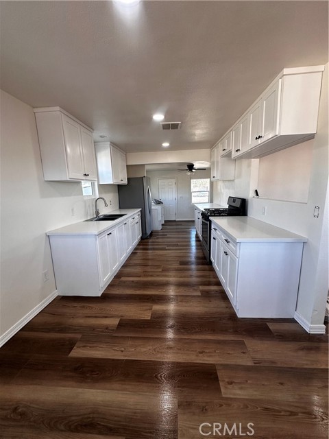This 3-bedroom, 1-bathroom home offers approximately 1,300 sq. ft. of comfortable living space and has been fully remodeled from top to bottom. Perfect for a first-time homebuyer or anyone looking for a move-in ready home. Enjoy the fresh updates throughout, including new vinyl flooring, baseboards, and a fresh coat of paint. The kitchen features modern white cabinets, quartz countertops, stainless steel appliances, and a stylish tile backsplash. The bathroom includes a shower/tub combo and tile flooring. Convenient laundry area located just off the kitchen, with extra space that can double as a pantry or storage area, great for cleaning supplies or even a small workspace. The front yard is low-maintenance with all gravel landscaping, while the fenced backyard offers a nice space to relax, entertain, or customize to your liking. Schedule a showing today!