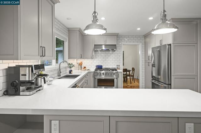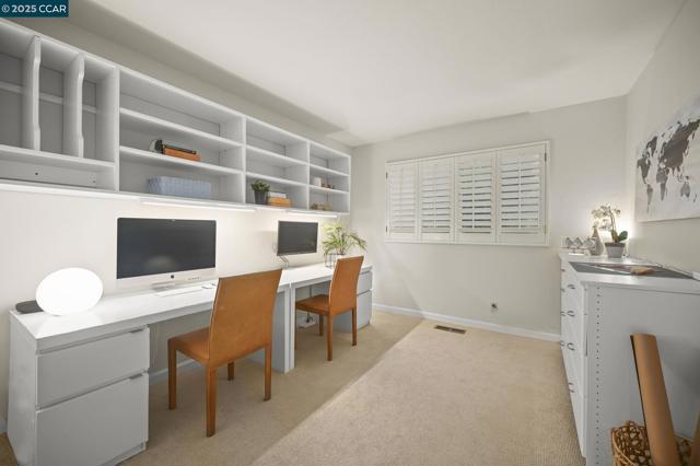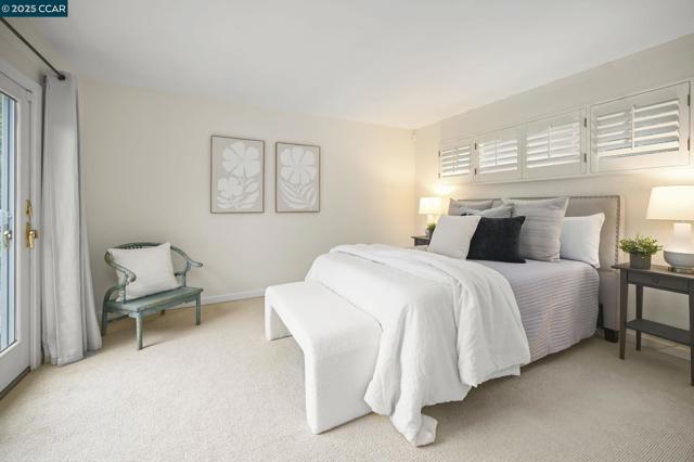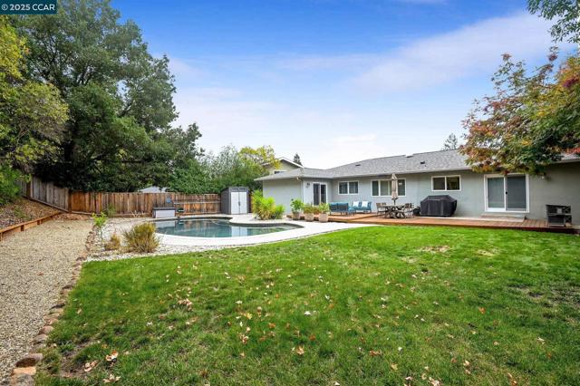 Northgate, a beautifully updated 4 bedroom, 2 bath home, offers a primary bedroom with easy access to outdoor spaces. One of the bedrooms is set up as a WFH office with built-ins. The chef’s kitchen overlooks a park-like backyard and opens to the family room & features a professional-grade gas range and exhaust hood, quartz countertops with a subway tile backsplash, & new luxury stainless steel appliances. Living room boasts soaring ceilings & a cozy fireplace. Private backyard includes a black bottom, saltwater pool, a redwood deck, & a clubhouse for the kids. The front landscaping has been updated for water conservation and a butterfly garden. Designer shutters adorn most of the home. The flooring includes hardwood entry & hallways, luxury vinyl plank in the kitchen & family room, carpet in the bedrooms, & travertine tile in the bathrooms. Smart features include an irrigation system, an alarm, and three cameras (including the doorbell). The house is close to trails, community park, shopping, & walkable to highly rated Northgate schools, Boundary Oaks Golf Course, Limeridge open space & Heather Farms. The roof and HVAC system were replaced in 2014. Solar leasing is paid through 2035. Open Houses 11/15 & 11/16 from 1 to 4 pm.