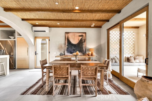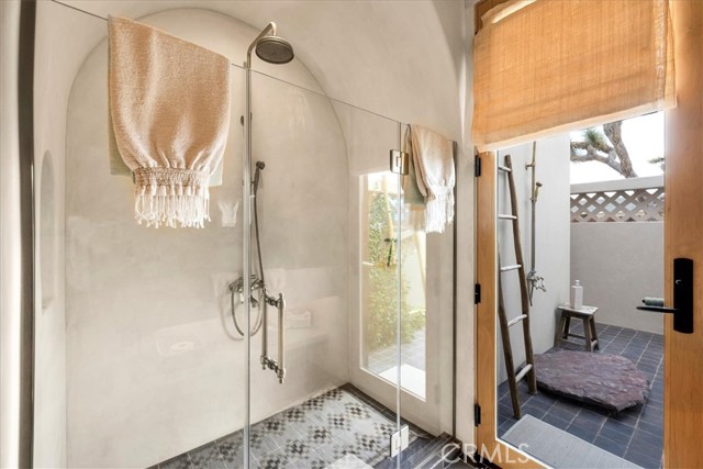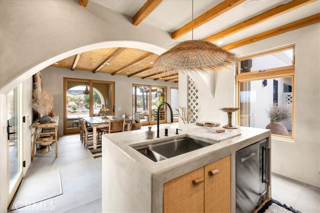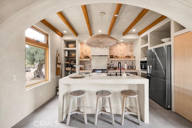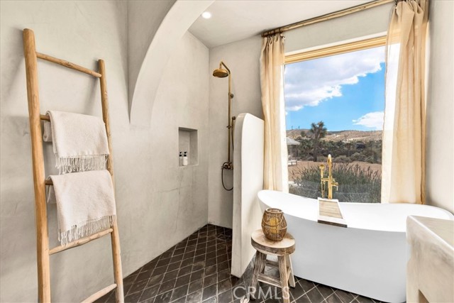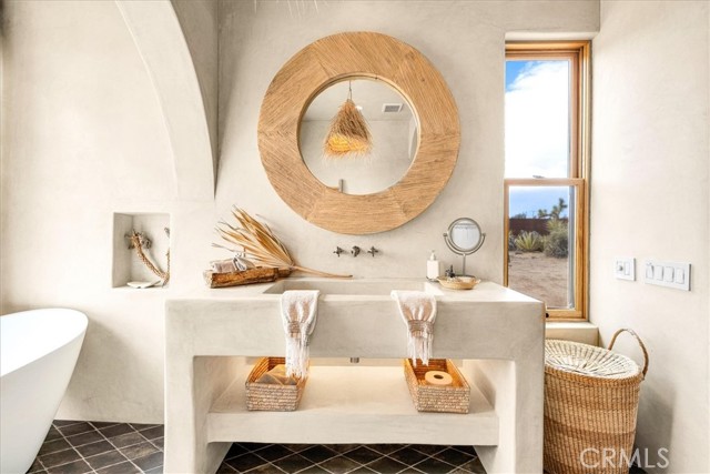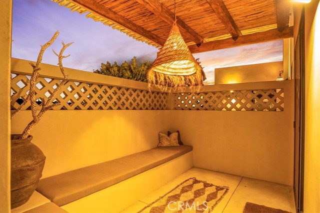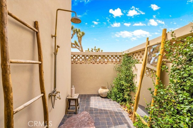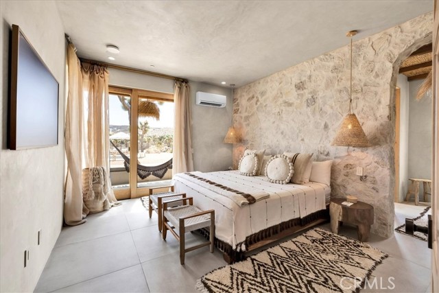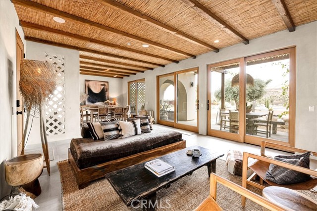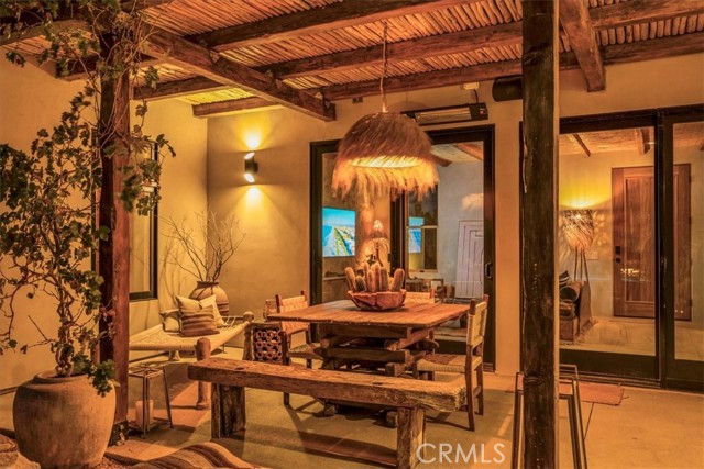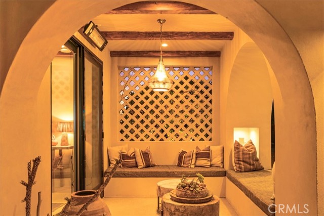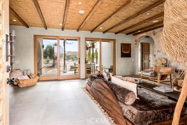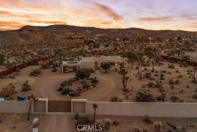 Step into your own private sanctuary in the heart of Yucca Valley—a stunning furnished Moroccan desert-inspired retreat that blends modern luxury with timeless design. This 2-bedroom, 2-bathroom architectural gem spans 1,363 square feet and sits on a serene 2.3-acre lot, offering total privacy and an unmatched desert living experience. From the moment you enter through the electric gate, you’re welcomed into a fully fenced oasis surrounded by native desert landscaping and curated stone walkways. Inside, you'll find sleek concrete floors, custom stone accents, built-ins, and thoughtfully designed living spaces that open seamlessly to the outdoors. The home features private patios, a tranquil inground heated salt water pool and spa, an outdoor fire pit, and shaded lounging areas—perfect for entertaining or unwinding under the stars. New modern architecture is complemented by mini splits for year-round comfort, while a carport adds function and more outdoor opportunities. This is more than just a home—it's a destination. Ideal as a luxury vacation getaway, high-end rental, or full-time desert retreat. Don’t miss the chance to own this truly one-of-a-kind property where style, privacy, and natural beauty meet.