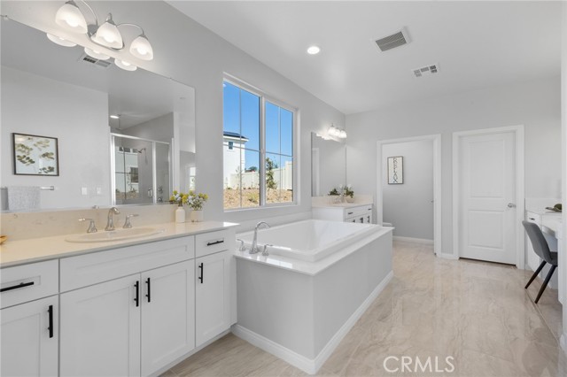 Gorgeous Bella Vista at Rio Bravo, an inviting community of new homes for sale in Bakersfield, CA! Find the perfect blend of comfort and style with our elegant floorplans, offering 4 bedrooms, 3.5 baths, and an impressive 2,995 sq. ft. of space to live and entertain! Enjoy an informal dining area as well as a large great room and flex area that opens onto a beautiful patio, perfect for a meal alfresco. Storage abounds in the kitchen, which boasts a walk-in pantry and a huge island, perfect for mornings with the family, or setting up for that next party. The master suite offers a relaxing soaking tub and separate walk-in shower with seat and two shower heads, and huge walk-in closet. Energy efficient features throughout. Three car attached tandem garage with finished interior. This home features more than can be described in writing! Be sure to come visit the models and see your new home!
