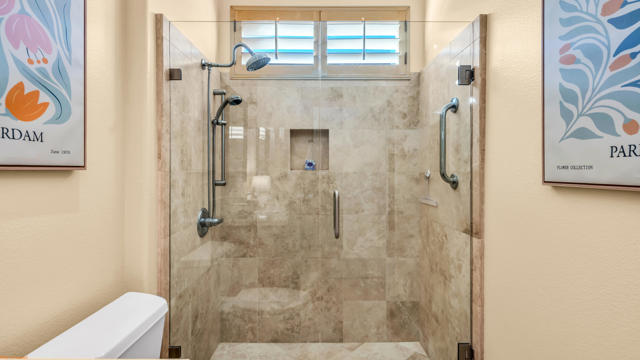 Welcome to this stunning, meticulously maintained, and beautifully upgraded one-of-a-kind St. Maarten model offering 2 Bedrooms PLUS Den & 2 Baths. A home that truly stands apart for its elegance, warmth, and attention to detail. You're greeted by a gorgeous custom courtyard featuring stacked stone accents, wrought iron detailing, and a soothing water feature that instantly sets a tone of tranquility. Step inside to discover spacious living areas with 20-inch tile flooring and rich hardwood floors in the bedrooms and den and attractive custom shutters throughout. The open-concept great room is designed for effortless entertaining and everyday comfort. It flows seamlessly into the reimagined chef's kitchen, a showpiece with custom Alder wood cabinetry, pullout shelving, inset glass panels, a generous granite island with pendant lighting, and stainless-steel appliances, including a new refrigerator. The inviting great room features a custom Alder media center and expansive views of the sunny, south-facing patio, perfect for relaxing or hosting guests. The luxurious primary suite is a serene retreat offering a custom walk-in closet with built-in organizers and a spa-inspired ensuite with dual sinks, makeup vanity, elegant cabinetry, marble countertops, and a travertine-tiled shower. A spacious guest suite on the opposite side provides privacy. The guest bath is enhanced with attractive cabinetry, rimless glass shower enclosure, and high-end finishes. The versatile den makes an ideal office, hobby space, or additional guest area. Step outdoors to your private entertainer's paradise, a south-facing patio featuring an alumawood cover that has been freshly painted, flagstone hardscape, lush artificial turf, and a cozy natural gas fire pit perfect for evening gatherings & conversations beneath the stars. Additional highlights include: indoor laundry with new stackable washer/dryer (2024), two-car garage with utility sink, tankless water heater, and MaXimum workbench/storage, HVAC (2022), refrigerator (2023), garbage disposal (2023), kitchen faucet (2024), and new smoke/CO₂ detectors. Offered turnkey furnished. This exceptional, move-in-ready home embodies comfort, sophistication, and true pride of ownership, a must-see!