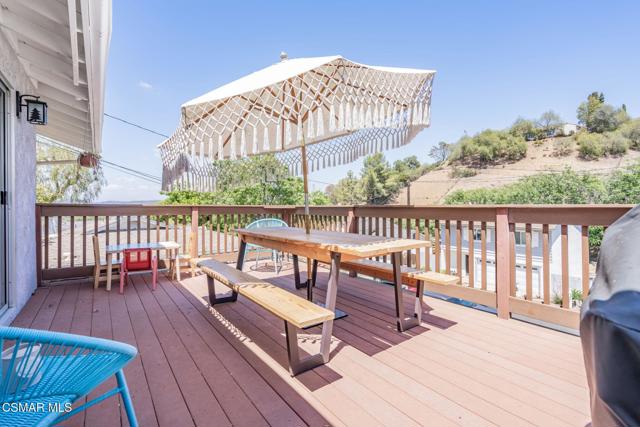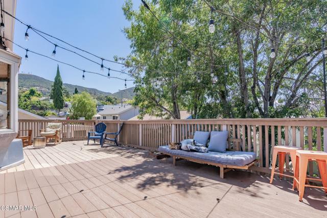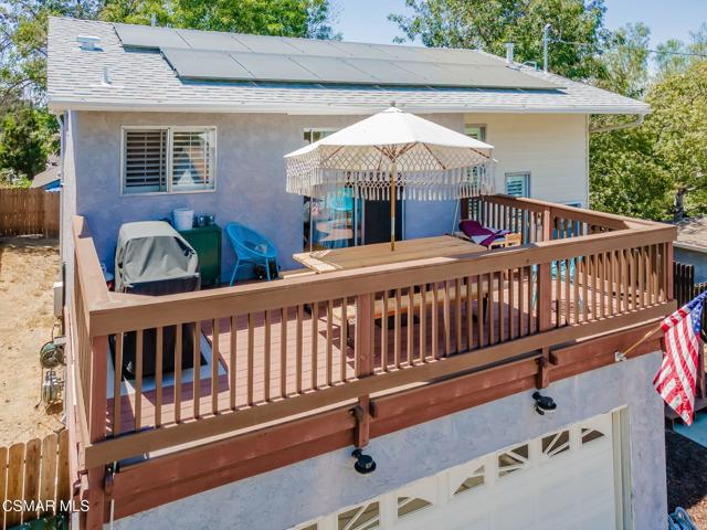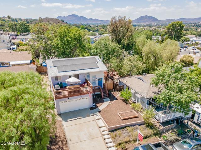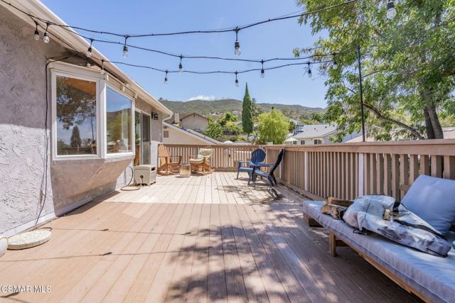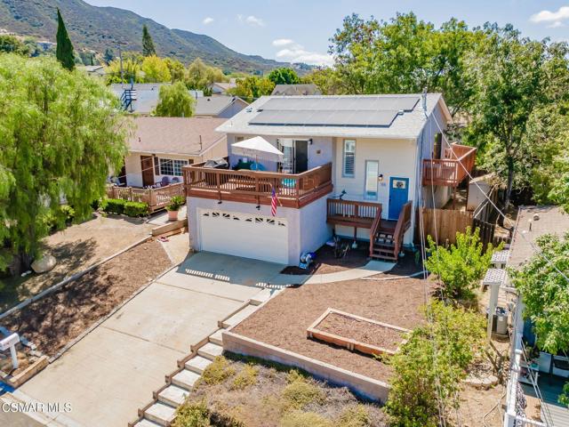 Charming Two-Story with Views, Decks & Versatile Living Spaces! Welcome to 155 Maple Rd, a warm and inviting home nestled in the heart of Newbury Park with hillside views, updated charm, and flexible living. This thoughtfully designed two-story features 3 spacious bedrooms, 2 baths, and generous indoor-outdoor flow from multiple decks and patios. The upstairs living space is light and bright, featuring a remodeled kitchen with custom tile backsplash, shaker cabinetry, and a farmhouse sink. A dining area opens to a large front deck, ideal for al fresco dining or lounging under the stars. The upper-level bedroom includes its own slider to a peaceful side deck and full bath. Downstairs you'll find two more bedrooms, one with direct access to the backyard patio, perfect for guests or a home office. The other includes an oversized closet and slider to a private yard oasis. A second full bath completes the lower level. The layout is ideal for split-level living, guest quarters, or potential JADU (buyer to verify). Enjoy the benefits of solar, battery backup, low-maintenance turf, and a spiral staircase connecting both outdoor levels. Set on a quiet street with easy access to trails, shopping, and top-rated schools, this home offers comfort, flexibility, and style in one beautiful package.