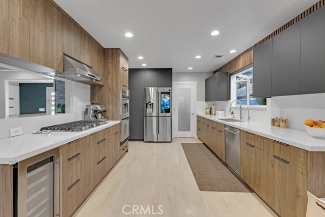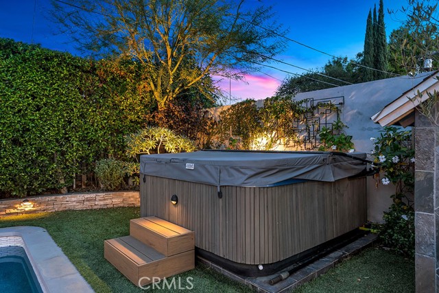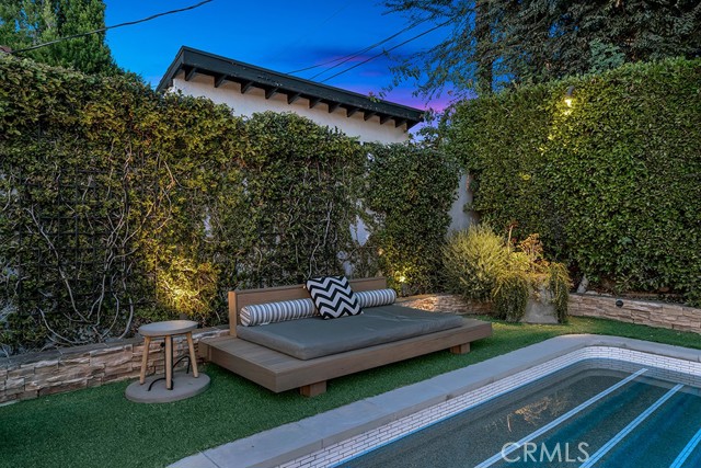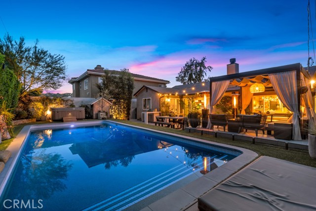 Welcome to this beautifully reimagined Sherman Oaks residence, where modern design meets resort-style living! Every inch of this home has been thoughtfully upgraded inside and out, blending luxury finishes with functional comfort and effortless indoor-outdoor flow. Step inside to discover smooth walls and ceilings, custom-built cabinetry, and an inviting open layout filled with natural light. The stylish European-inspired kitchen features sleek Caesar stone countertops, custom cabinetry, double ovens, and premium stainless appliances—perfect for the home chef. The converted garage adds approximately 400 sq. ft. of finished living space, ideal for a family room, gym, or studio, while the finished attic with built-in stairs provides additional versatile space. The primary suite offers a custom-built walk-in closet with elegant cabinetry and media storage. Bathrooms and laundry have been tastefully updated, and thoughtful details throughout include new HVAC and A/C, a new water heater, upgraded insulation for energy efficiency, and a security system with hardwired cameras. Outside, your private oasis awaits and is ready for entertaining! Enjoy a fully renovated backyard featuring a new PebbleTec pool regraded to 5’ depth, above-ground jacuzzi, and a custom cabana with chandelier lighting and fire pit—perfect for entertaining or relaxing under the stars. A built-in BBQ, outdoor bar with sink, and new surround sound system extend your living space outdoors. The yard also includes a new irrigation system, pavers, lighting, and raised stucco privacy walls for added seclusion.Additional highlights include new dual-pane windows and doors, smooth stucco exterior, Catalina stackable sliders for seamless indoor-outdoor flow, and refreshed curb appeal with new landscaping and hardscape. This turnkey home embodies the best of California living—modern comfort, timeless design, and a true entertainer’s backyard in a highly desirable Sherman Oaks neighborhood close to top schools, dining, and shopping. Optional w/ furniture and short term rental ok.