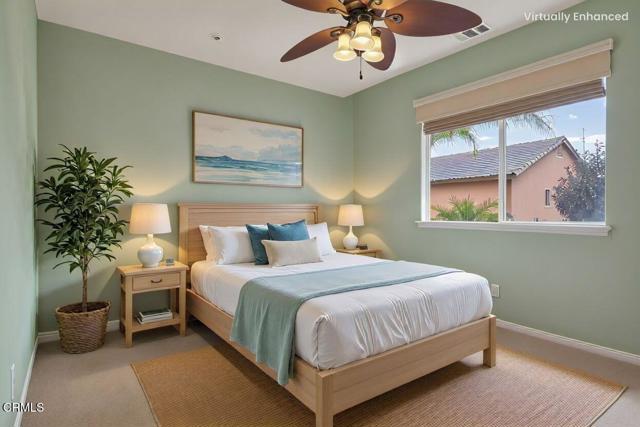 Welcome to this charming 3-bedroom, 3-bathroom home offering 2,001 sq. ft. of comfortable living space in a peaceful Oxnard neighborhood, conveniently located near shopping, restaurants, parks, and schools! This move-in-ready home features fresh interior paint and recessed lighting, creating a bright and welcoming atmosphere. Enjoy an open floor plan perfect for entertaining with a spacious kitchen that includes a kitchen island, walk-in pantry, ample cabinet space, and a seamless flow into the dining and living areas. The living room features a cozy gas fireplace. The backyard is ideal for family gatherings, BBQs, or relaxing evenings outdoors. Upstairs, the large primary suite offers an ensuite bathroom with dual sinks, a separate toilet area, and a generous walk-in closet with built-in organization. All bedrooms feature ceiling fans for added comfort. Additional highlights include indoor laundry room, central heating and air conditioning, a finished garage with an abundance of built-in storage, owned water softener and reverse osmosis systems. With no HOA or Mello-Roos fees, this home provides exceptional value and peace of mind. This property offers the perfect blend of space, comfort, and convenience -- a must-see opportunity!