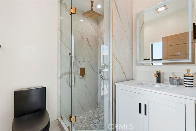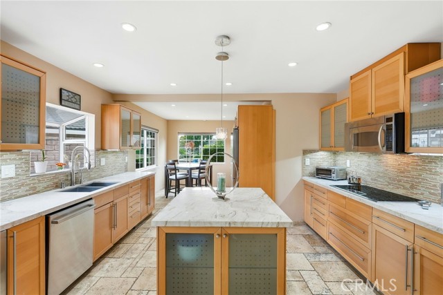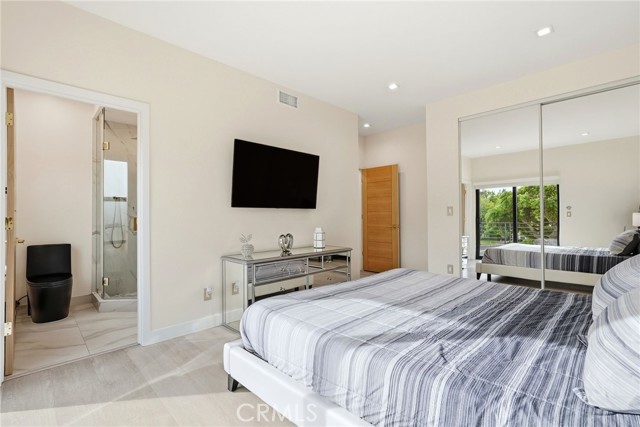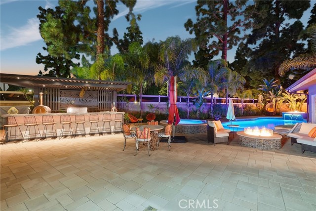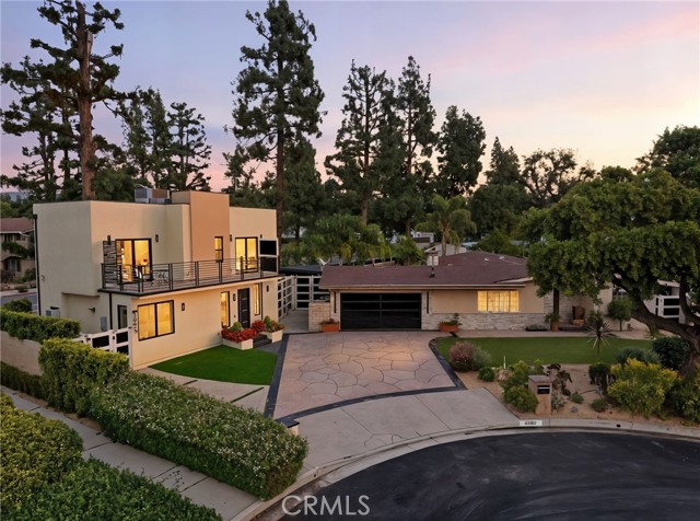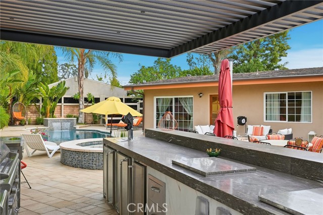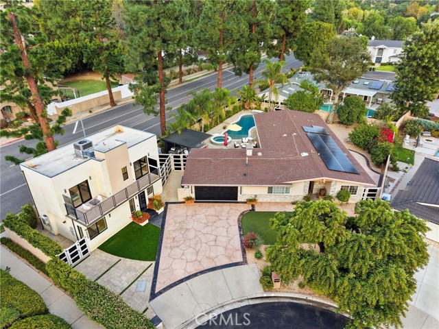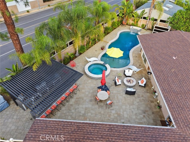 Experience modern California living at its finest with a seamless blend of traditional charm and contemporary design. From the moment you arrive, the striking black entry doors set the tone, highlighting the contrast between the classic single-story main residence and the sleek two-story ADU. The main residence offers approx. 2,211 sq ft with 3 bedrooms and 2 bathrooms and features a bright open layout with elegant updates throughout. The spacious living and dining areas flow into the remodeled kitchen with quartz countertops, custom cabinetry, stainless-steel appliances, and a large breakfast bar ideal for gatherings. A gas fireplace adds warmth to the main living space. The serene primary suite offers a walk-in closet and an updated en-suite bath overlooking the pool. Additional bedrooms provide versatility for guests, family, or a home office. A hallway laundry area with cabinetry adds convenience. Upgrades include paid solar, updated electrical, a tankless water heater, EV charger, a newer roof, and a recently replastered pool, offering comfort, reliability, and efficiency. The outdoor space is an entertainer’s retreat with a sparkling pool and waterfall wall, modern firepit lounge, second firepit, and an expansive covered patio with a full outdoor kitchen equipped with a pizza oven, charcoal grill, refrigerator, freezer, beer tap, beverage bar, sink, and ample seating. A storage area with a shed and an outdoor shower add practicality. The side yard includes a third firepit, mature fruit trees, and space ideal for storage or potential JADU. The modern ADU, fully permitted with its own address and yard, features 2 bedrooms and 2.5 bathrooms with striking architectural design. The main level includes an open living area, a designer kitchen with waterfall-edge quartz, high-gloss cabinetry, premium LG appliances, a half bath, and in-unit laundry. Upstairs are two bedrooms—one en-suite and one with a hallway bath—each with private balconies and treetop views. With its own water sub-meter and strong Airbnb performance, the ADU offers excellent income potential or multigenerational living. Located on a quiet cul-de-sac surrounded by mature landscaping and natural privacy, this property delivers versatility, comfort, and a refined Southern California lifestyle, perfect for those seeking both function and elevated everyday living.