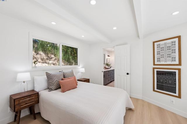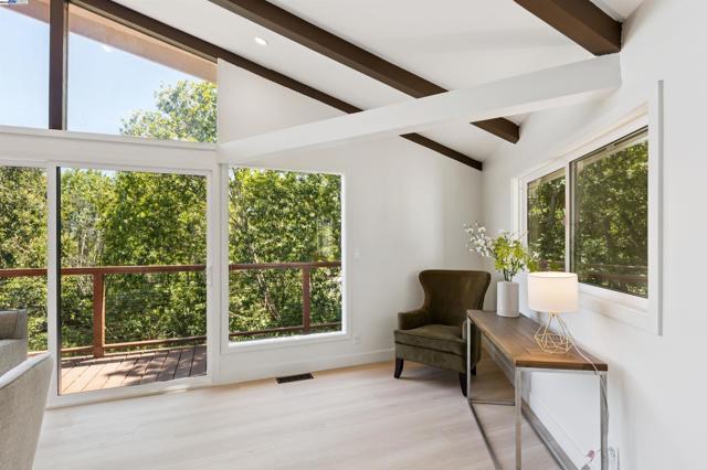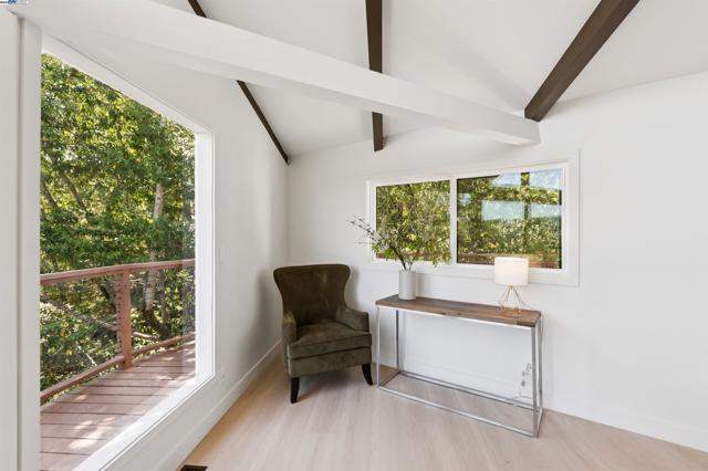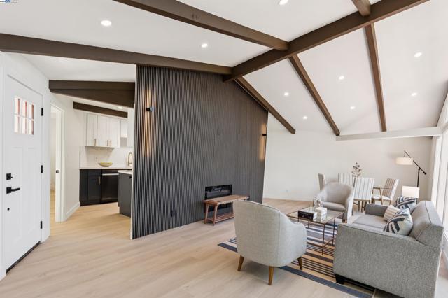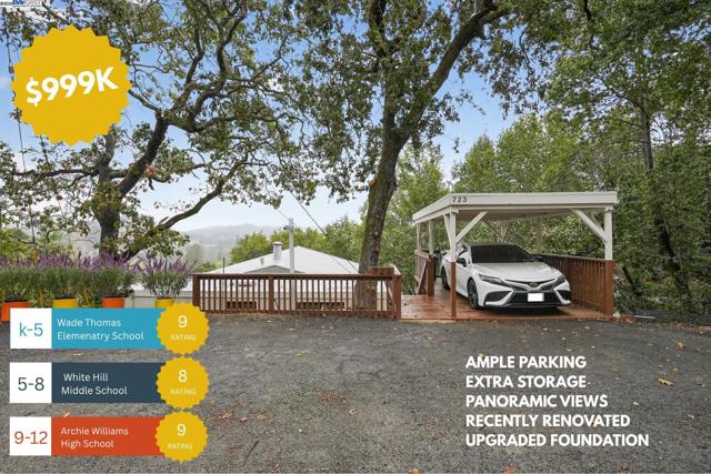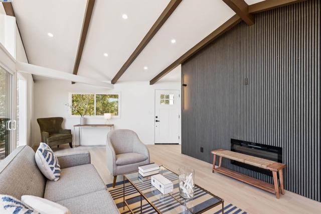Perched above the heart of San Anselmo, this hillside residence captures the essence of Marin living with panoramic views, timeless mid-century character, and fresh modern updates. An airy open floor plan with vaulted ceilings and walls of glass fills the home with natural light, while a sleek fireplace anchors the living room — perfect for both quiet evenings and lively gatherings. The chef’s kitchen is fully updated with quartz countertops, stainless steel appliances, and custom cabinetry, creating a stylish space that blends seamlessly with the main living area. Step outside to an expansive wraparound deck, where mornings begin with coffee above the treetops and evenings end with sunset skies. Inside, the updated bathroom features contemporary tilework and fixtures. Beyond the main living spaces, a large, versatile storage area adds practicality and flexibility — ideal for gear, hobbies, or the possibility of a future gym or studio. Rare for the neighborhood, the property also includes a designated carport and a flat paved area with room for multiple guest vehicles. Set on a quiet hillside just minutes from downtown shops, dining, parks, and trailheads, this move-in ready home offers a rare blend of style, function, and the best of indoor-outdoor Marin living.