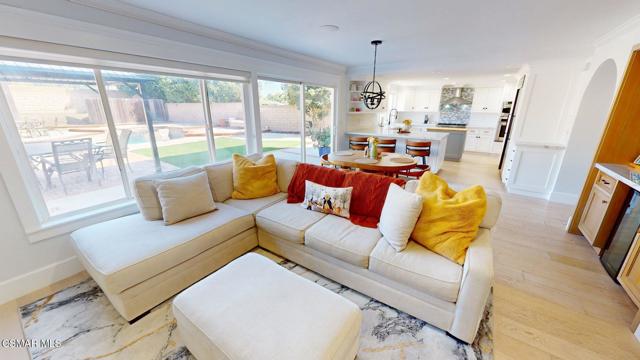 Welcome to this beautiful Newbury Park home featuring four bedrooms and two and a half baths. The remodeled kitchen offers stainless steel appliances, an open floor plan, and a light, bright interior perfect for everyday living and entertaining. The home includes a formal living room and dining area, as well as a cozy family room with a custom-finished fireplace. Additional highlights include an indoor laundry room and a spacious primary suite with an updated bathroom featuring a large soaking tub, separate shower, and walk-in closet. Step outside to enjoy the private backyard oasis with a sparkling pool and spa. Ideally located on a cul-de-sac near a scenic park, hiking and biking trails, shopping, dining, and award-winning schools this home truly has it all.
