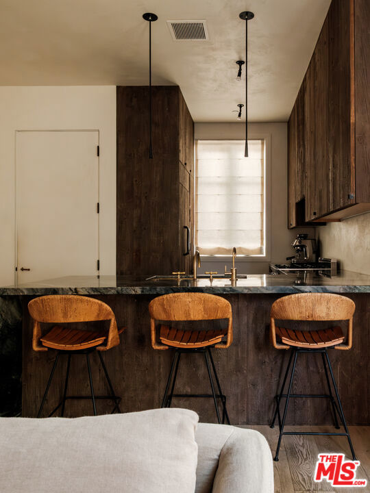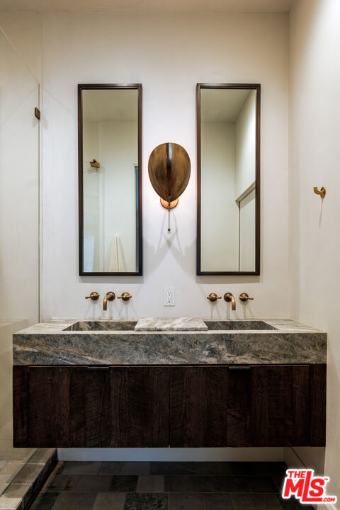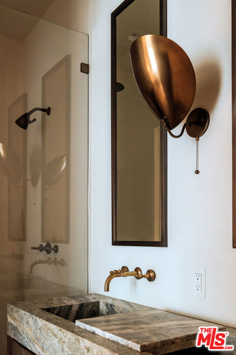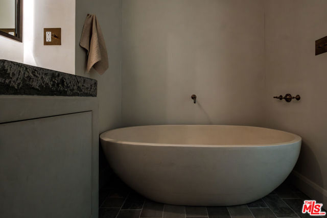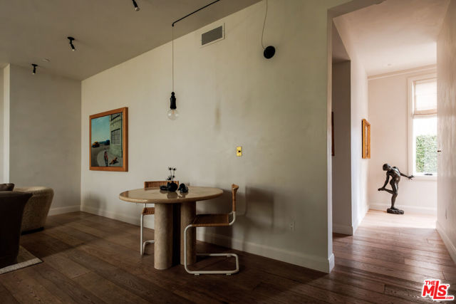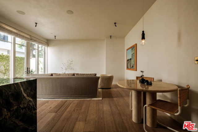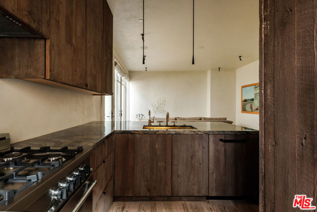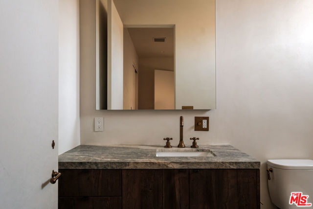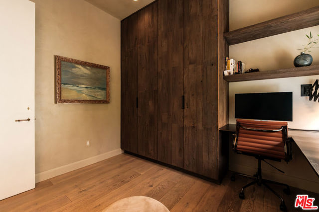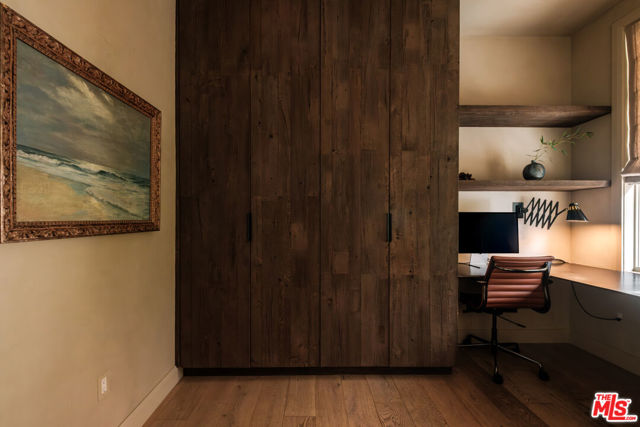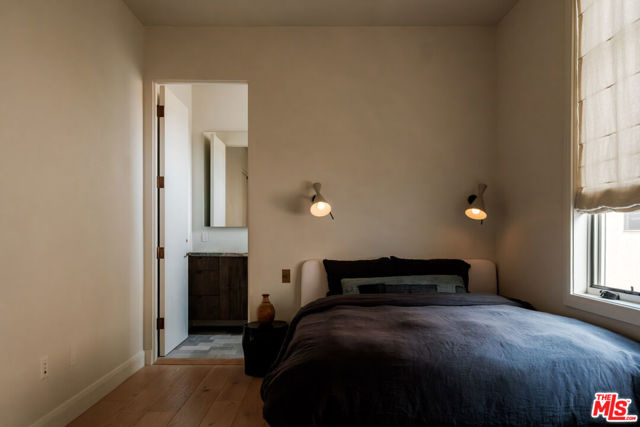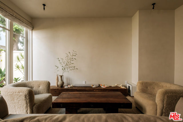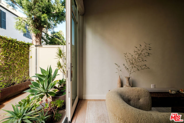 Nestled just five blocks from the Santa Monica Beach, this meticulously crafted townhome offers an incredibly unique opportunity to move into a fully furnished and styled residence. Meticulously executed by a renowned interior designer, this home represents a rare chance to acquire a living space where every detail has been carefully curated.Top-of-the-line finishes, including custom hardware, paint treatments, furniture, and curated art, create an exceptionally design-forward home. These elements combine imported pieces from Europe, South America, and local Los Angeles sources to create a warm, peaceful space filled with light and purposeful flow.The home's interior showcases a thoughtful layout with an elegantly crafted living, dining, and kitchen area. The living room features a Samsung ultra-short throw smart laser home theater projector, creating an immersive entertainment experience. The kitchen boasts unique cabinetry with a custom brass sink and Brazilian quartzite countertop, complemented by a professional-grade Bertazzoni gas range. Adjacent to this space, a versatile first-floor bedroom is currently configured as a high-end home office with built-in cabinetry, desk, and furniture. A full bathroom featuring a Belgian limestone sink, travertine tub, and contemporary shower completes the ground floor.Ascending the stairs reveals a primary bedroom with floor-to-ceiling sliding doors and windows and two closetsincluding a spacious walk-in. The en-suite bathroom features double sinks and elevated fixtures from Waterworks, creating a spa-like retreat. A naturally lit hallway leads to the third bedroom with its own en-suite bathroom.The ~750 sq ft rooftop deck extends the home's living space, featuring a Sol built-in BBQ, Brown and Jordan fire table, and mini fridge. A Sonos sound system throughout the home and deck creates an immersive audio experience. The upstairs sanctuary offers sweeping views of the city and mountains. Located in the acclaimed Roosevelt Elementary School district and steps from Montana Avenue.With a two-car garage featuring built-in storage and direct interior stair access, this property provides seamless urban convenience. List price is for the unfurnished home.