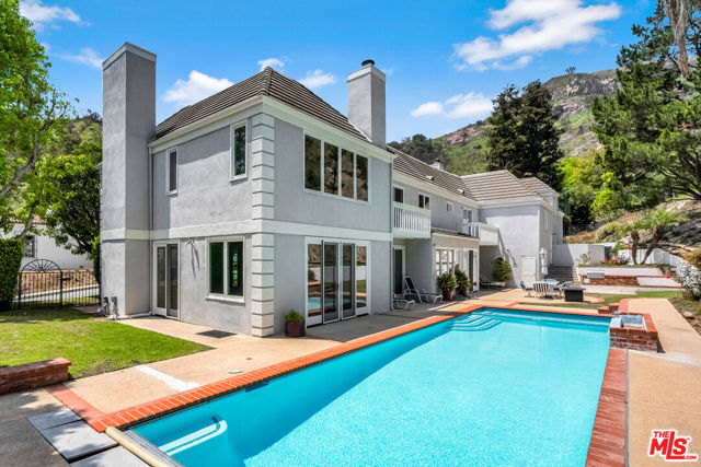 Showing for Back up Offers. Tremendous opportunity. The largest home in Pacific Palisades on the market for under $3.5 Million. Situated on a quiet cul-de-sac in the highly desirable 24-hr guard-gated Palisades Country Estates, this spacious home has a private pool, spa, outdoor bbq and grassy yard. The upstairs has 5 bedrooms, while there is a 6th bedroom on a separate level. The main floor of this stately residence offers a family room with brick surround fireplace and bar, large living room with stunning fireplace mantle and surround, a modern kitchen with eat-in breakfast area and formal dining room. Finally, the loft would make a great game-room, office or play area. The motor-court with 3-car garage provides plenty of off-street parking. Your chance to move in to a 6- bedroom home rarely available in this price category. No houses on the street were lost to the fire and residents have been back enjoying their homes in this sought after community. Furniture is available if Buyer is interested. Property is also available for furnished or unfurnished lease for $17,500 per month.