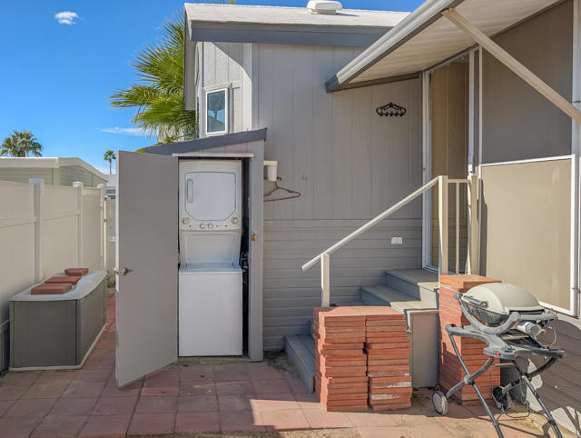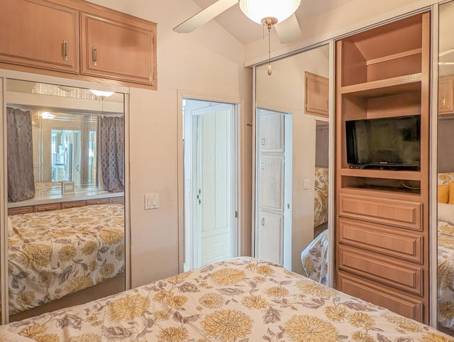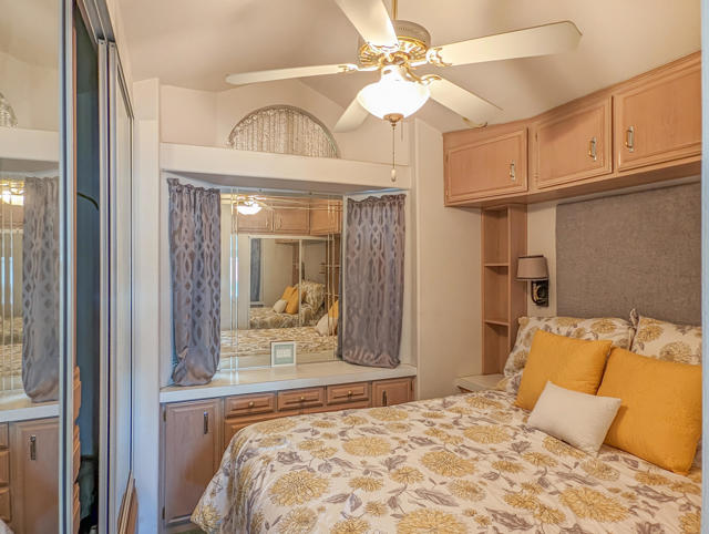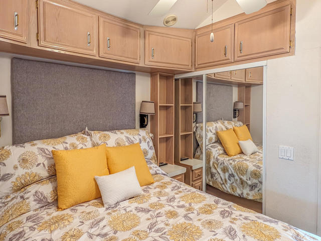Enjoy stunning mountain and vista views from the front porch of this bright and efficient ~700 sq. ft. Silvercrest Park Model home. Featuring one bedroom, one bath, a washer and dryer, a new white coat roof, fresh paint, solar screens, a newer hot water tank, a small backyard courtyard, and spacious paved parking for two or more cars, this residence offers a peaceful sense of serenity. Centrally located within the park, it is just steps from the Clubhouse and provides easy access to all amenities and activities available at the premier 55+ Caliente Springs Resort gated community. Residents can take advantage of a mineral-fed hot spring pool and spas, eight pickleball courts, tennis courts, a nine-hole golf course, driving range, scenic desert hiking trails, laundry facilities, a library, gym, and much more. With convenient access to all the resort amenities, residents can easily join social gatherings, fitness classes, or relax in the tranquil setting of the mineral pools. The community's active calendar ensures there's always something to enjoy, whether you're interested in sports, wellness, or simply unwinding with neighbors. Beautifully maintained grounds and a welcoming atmosphere create an ideal retreat for those seeking comfort, connection, and recreation in a vibrant 55+ environment. Lot is not owned; space rent is $673.
