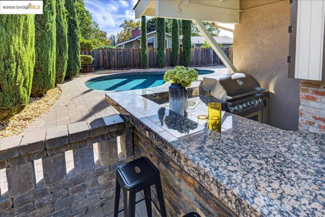 This home is all about easy, outdoor living! Located on a quiet cul-de-sac, this single-level home features an open-concept kitchen, dining, and living area—perfect for entertaining and everyday comfort. The kitchen offers stone counters, a custom tile backsplash, and stainless appliances including a gas range with vent hood and dual-drawer dishwasher. Expansive windows fill the home with natural light and showcase a backyard designed for fun, with a large built-in pool, outdoor kitchen, firepit, and beautiful paver patio. Modern lighting throughout the home adds a stylish touch. Plenty of room for all your toys, including boat, RV, and multiple cars. Enjoy easy indoor-outdoor flow with multiple sliders to the backyard and a finished two-car garage. Three bedrooms include an updated primary ensuite and refreshed second bath. A detached shed provides flexible space for an office, gym, or studio. Energy-efficient owned solar keeps costs low. Ideally located between Dana Estates and Canterbury Village, near Diggers Diner, Fitness 19, and Gehringer Community Garden.