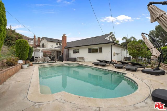 An amazing single story home in the highly coveted Lake View Terrace is now available! This spacious home sits on a quiet cul-de-sac on a large lot backing a beautiful hillside, offering a peaceful neighborhood feel while still being just minutes from the 210 Freeway with quick access to La Canada, Glendale, and Pasadena. At 1,742 square feet, it features 3 bedrooms plus a den and 2 bathrooms, a large lot with a swimming pool, and numerous recent upgrades including a new roof with upgraded fire-code vents and screens, brand new gutters, a new A/C condenser, a new hot water heater, updated electrical and panel, a Tesla EV charger and more. The home includes beautiful wood flooring throughout, fresh paint, new hardware on all doors and cabinets, updated sink and faucet hardware in the kitchen and bathrooms, a custom double built-in desk with soft-close drawers and cabinets in the 4th room, and a kitchen equipped with new stainless steel appliances. The backyard offers a swimming pool and spa with a new pool vacuum and filter that have been professionally maintained weekly since purchase, along with a large shed. The lot provides versatility and charm with a two-car garage, additional driveway parking, a long side parking area that can accommodate an RV or boat, and fruit trees on the opposite side, and prospective buyers may explore the potential for an Accessory Dwelling Unit (ADU). Nestled in the picturesque Foothills, Lake View Terrace offers convenient access to the 210 and 118 Freeways, equestrian trails, Hansen Dam, the Angeles National Golf Course, and a variety of other nearby amenities. Don't miss your chance to view this amazing home, schedule your showing today.
