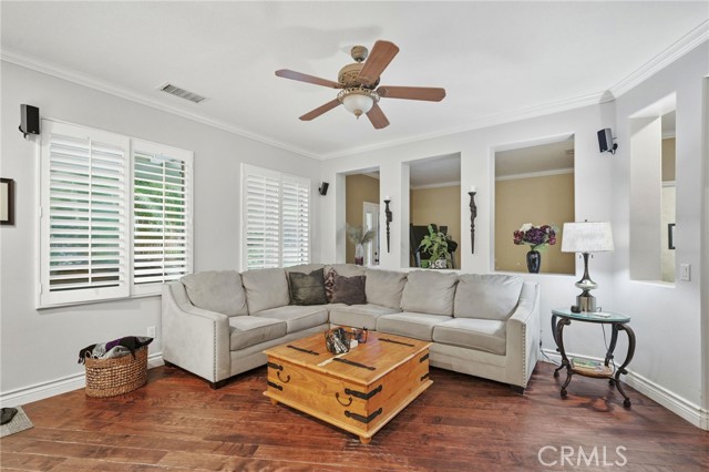 Welcome to your dream home in a prime location with large, extended driveway! Situated on one of the larger lots in the neighborhood (13,134 sq feet), this charming residence features 4 bedrooms PLUS office space AND a den/bonus room (that can be made into a 5th bedroom!) Also enjoy a formal step-down living room, highlighted by a stunning sweeping staircase that makes a bold statement. As you enter, you'll immediately notice the formal dining room perfect for entertaining guests. The gourmet kitchen is a chef’s delight, boasting an expanded island with a beautiful quartz countertop, with space for a wine or coffee bar. The rest of the kitchen has sleek granite counters, and a stunning stone backsplash, along with stainless steel appliances that make meal prep a breeze. Step outside to discover a private yard complete with a patio cover, making it an ideal spot for outdoor gatherings. The pool-sized yard provides ample space for entertaining or future pool installation, turning your backyard into an oasis. This home also features shutters for added privacy, a soft water filtration system, crown molding, upgraded baseboards, ceiling fans and rich hardwood flooring throughout the home. Amenities include community pool, spa, greenbelt and park. Low HOA fees! Near shopping, restaurants and award winning schools. SOLAR will be paid off by the Sellers at close of escrow. Don’t miss your chance to experience the elegance and comfort of this stunning home! Some photos have been virtually altered for decor purposes only.