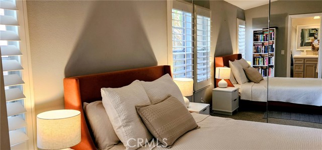 Experience elevated living in this beautiful townhome, perfectly situated in the heart of Rancho Santa Margarita — with no one above you, offering exceptional privacy and tranquility. This light and inviting two-story home features 2 generous bedrooms and 2.5 baths, including a recently remodeled upstairs bathroom with refined designer finishes. The spacious living room welcomes you with abundant natural light, a cozy fireplace, custom wall cabinetry, and serene views of lush greenery — creating an ideal space for both relaxation and entertaining. The kitchen is thoughtfully appointed with stainless-steel appliances, newer quartz countertops, a convenient breakfast bar for your morning coffee, and a charming dining nook. Elegant wood shutters grace the entire home, with tile flooring on the main level and plush carpeting in the bedrooms. A striking chandelier illuminates the staircase, adding a touch of sophistication. Ceiling fans in bedrooms and family room, recessed lighting downstairs. Upstairs, the primary suite offers mirrored wardrobe doors and a beautifully remodeled bath with a bathtub and stylish wood paneling and warm natural light. A linen cabinet in the hallway provides additional storage. Additional features include: Ceiling fans in both bedrooms and the living room. Sliding glass door leading to a peaceful patio overlooking greenery and the playground. One-car detached garage with washer and dryer included An extra assigned parking space (#37) With access to the community pool and spa, plus Samlarc amenities such as additional pools, parks, and the lake, this home delivers the perfect blend of comfort, elegance, and convenience — ready for you to move in and enjoy the best of Rancho Santa Margarita living.