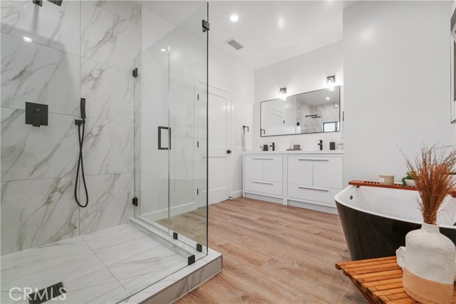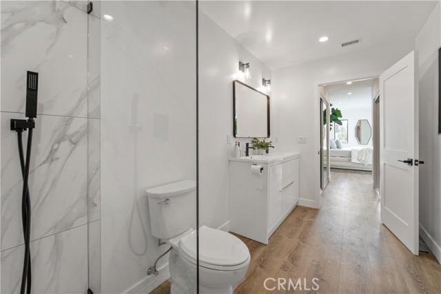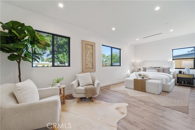 Step into a stunning blend of contemporary design and timeless sophistication with this newly built single-story Modern Farmhouse featuring an ADU and a detached storage unit. Completely reimagined, expanded, and rebuilt from top to bottom, this home offers the perfect balance of luxury, comfort, and functionality. Every detail from the new roof, windows, and doors to the electrical, HVAC, plumbing, and flooring reflects exceptional quality and craftsmanship. Inside, discover a bright and spacious open-concept floor plan with high ceilings and an effortless flow between living, dining, and outdoor spaces. Oversized bi-fold glass doors open to a lush private backyard, creating a seamless indoor-outdoor lifestyle ideal for both relaxation and entertaining. The gourmet kitchen is the heart of the home, featuring a large center island, designer finishes, and new appliances, perfect for everyday living or hosting gatherings. The serene primary suite offers a relaxing retreat with a sitting area, expansive walk-in closet, and a spa-inspired ensuite bathroom complete with a freestanding soaking tub, dual vanities, and an elegant step-in shower. A secondary ensuite bedroom provides comfort and privacy for guests or family. The attached 971 sq ft ADU (with its own address at 7719 Jamieson Ave) features separate electric and gas meters. This self-contained unit includes a primary suite with private bath, an additional bedroom, full kitchen, living area, and in-unit laundry, ideal as a guest home, office, or income-generating rental. The ADU is currently leased. An additional detached storage unit provides convenient extra space for tools, seasonal items, or hobby equipment. Located just minutes from Cal State Northridge, shopping, and nearby parks, this property perfectly combines modern luxury with everyday convenience.