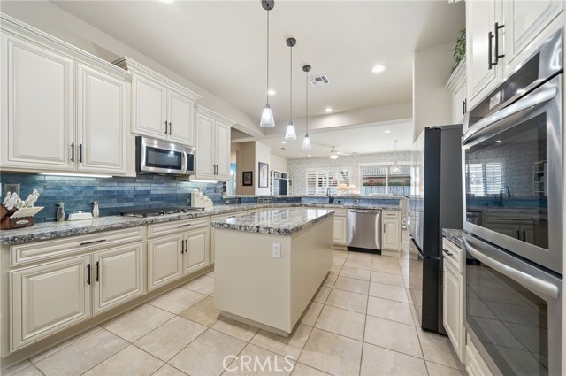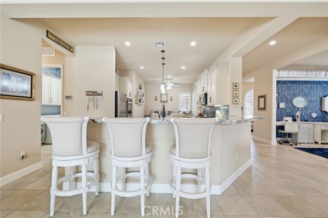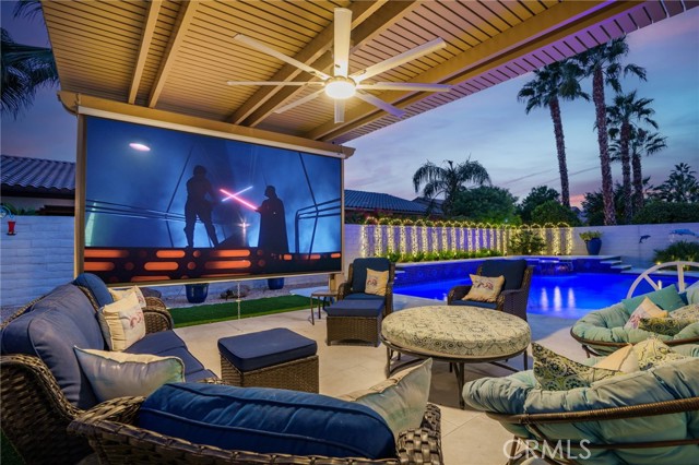 ***DON’T MISS THIS STUNNING CASTELLANO-MODEL POOL HOME—OVER $211,000 IN RECENT UPGRADES—IN THE HIGHLY DESIRABLE SUN CITY SHADOW HILLS COMMUNITY! Premium Quality, Absolutely Immaculate, and Truly Move-In Ready!***This beautifully maintained 2,230 sq. ft. single-story residence offers 2 bedrooms, 2.5 baths, and a spacious bonus office/den, all wrapped in an inviting open-concept design with travertine flooring and plantation shutters throughout. The brand-new gourmet kitchen is a chef’s delight, showcasing premium granite countertops, an enlarged center island, a 7-person breakfast bar, stainless steel appliances, five-burner gas cooktop, double ovens, under-cabinet lighting, and soft-close pull-out cabinetry. A generous dining area complements the kitchen, while the formal dining room—currently used as a sewing room—features a unique built-in shelf encircling the space. The expansive great room opens to your private desert oasis: a completely redesigned backyard with a new saltwater pool and spa, travertine decking (cooler underfoot in hot temps), fresh landscaping, a covered dining area, and an extended covered patio with a retractable movie screen—perfect for both relaxation and entertaining. The luxurious primary suite offers a large walk-in closet, dual vanities, a Roman soaking tub, and an oversized walk-in shower. The privately located secondary bedroom—with an adjacent full bath—is ideal for guests or multi-generational living. A stylish powder room is conveniently positioned off the main living area as well as a laundry room with sink and bonus cabinetry. The 2-car garage enjoys an additional 3rd golf-cart garage...the garage features insulated roll-up doors, overhead storage and a mini-split heating and air-conditioning unit (to moderate temperatures in summer and winter). Enjoy resort-style living in Sun City Shadow Hills, an active adult community featuring two golf courses with lakes, multiple clubhouses, fitness centers, indoor and outdoor pools/spas, pickleball, tennis, bocce, shuffleboard, table tennis, billiards, dining options, and countless clubs and activities. HOA dues even include internet! There is way too much to list everything that this property has to offer in this description! With exceptional upgrades and a brand-new pool and spa, this home truly defines desert living at its finest.