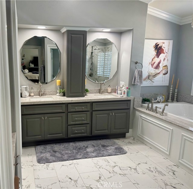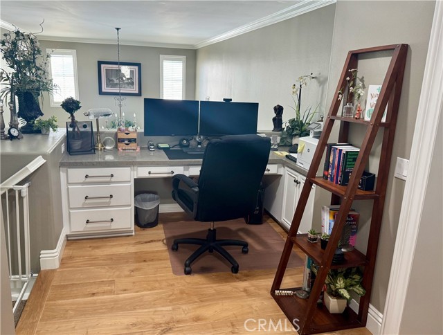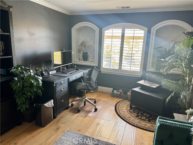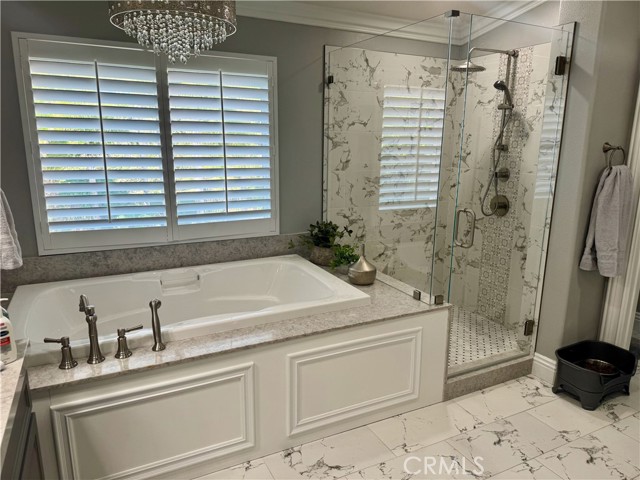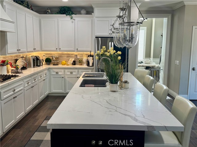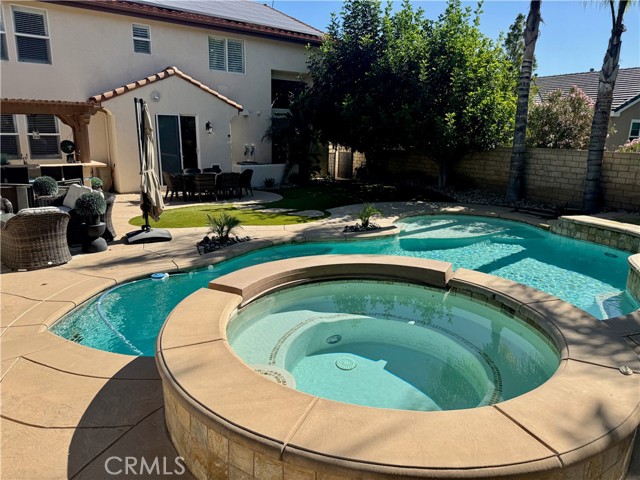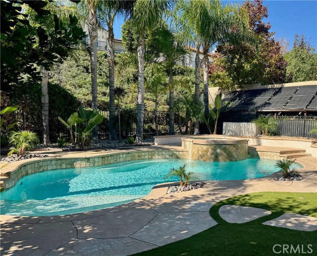 This gorgeous home in Stevenson Ranch is one of a kind! The move-in ready 4 bedroom, 3 bath home includes an office, an open loft, and a formal dining room. It has been recently remodeled with many upgrades including crown molding, custom cabinets throughout, custom entertainment cabinets and library shelves in the living room, granite counter tops and stainless appliances in the kitchen. Custom shutters and bamboo or hardwood flooring are in every room in the home. The laundry room is located on the 2nd floor which includes a utility sink and more custom cabinets. The primary bedroom is large with a spacious bathroom featuring an oversized soaker tub, large shower, large walk in closet with built-in closet organizers. The amazing backyard is ready for you to entertain, with an exquisite pool, jacuzzi with separate heating solar heating system, back yard fireplace, outdoor kitchen that includes sink, BBQ, fridge, kegerator and bar that can sit 6 or more people. You must see thsi home in person to appreciate all it has to offer!