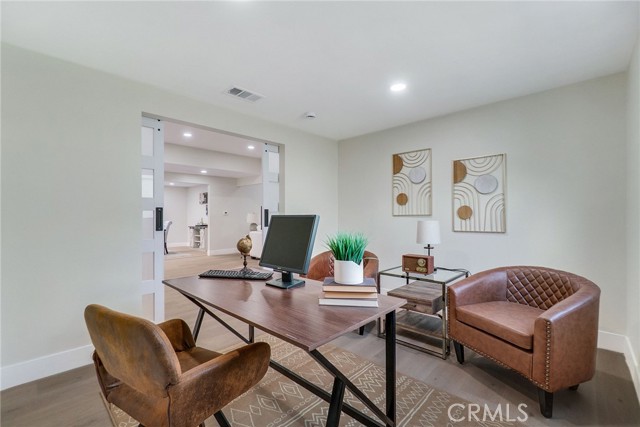 Welcome to 1381 Penrith Ln, Tustin, CA 92780, a beautifully fully remodeled, move-in ready home featuring PAID OFF SOLAR, located in Tustin’s coveted Broadmoor community known for its charm, walkability, and well-maintained surroundings. This single-story residence offers 3 bedrooms, 2 baths, and 1,526 sq ft of elegant living space, plus an upgraded bonus room ideal for an office, lounge, or extra entertainment area. Thoughtful upgrades include brand-new LVT flooring, recessed LED lighting, dual-pane windows, new glass doors, and a striking double-entry front door that sets the tone upon arrival. The open-concept layout flows seamlessly through the living, dining, and kitchen areas, highlighted by a warm and inviting central chimney. The newly updated U-shaped kitchen features soft-closing cabinetry, sleek countertops, and stainless-steel finishes perfect for everyday living and hosting. Custom barn doors stylishly separate the living room from the office and the primary suite from its spa-inspired en-suite bath. Additional features include central AC and heating, a freshly painted exterior, and a 2-car garage. Located across from a peaceful park and steps from the community pool and greenbelt, all with ultra-low HOA dues, this home offers convenience and lifestyle, with proximity to The District at Tustin Legacy, Costco, Old Town Tustin, local parks, and major freeways. This move-in ready Broadmoor gem has it all, bring your buyers today!
