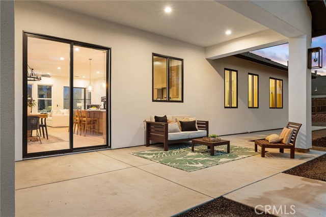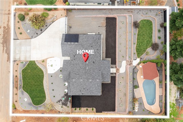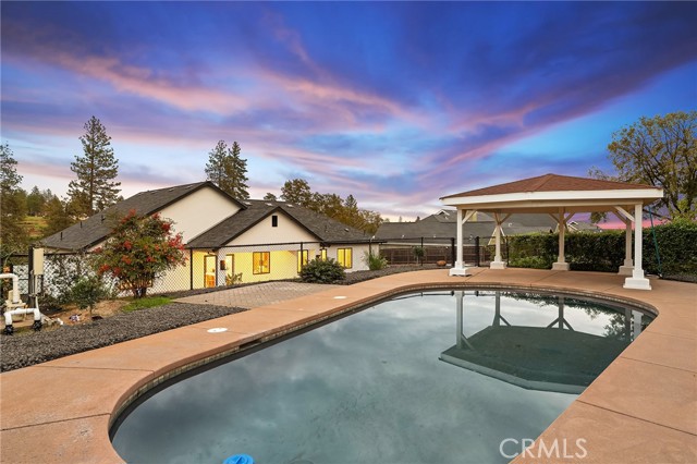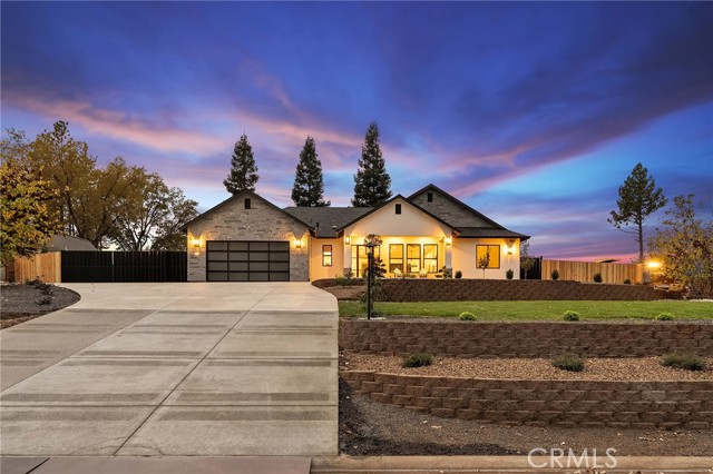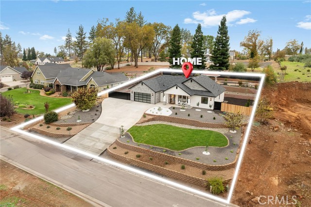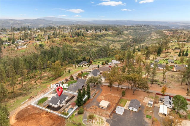 As you arrive at this newly built home with owned solar, the first thing you’ll notice is its serene setting—perched above Dry Creek Canyon with peaceful views of mature trees that frame the landscape. The approach to the home is impressive, with a wide concrete driveway offering generous parking, including dedicated RV access, and a beautifully designed front yard. Carefully crafted retaining walls define each landscape element—lush lawn, decorative rock beds, shrubs, and architectural plantings—creating a clean, modern curb appeal that complements the home’s striking façade. A large glass entry door welcomes you inside, where the open-concept design immediately expands before you. The kitchen, dining, and living areas blend seamlessly, filled with natural light from the expansive windows overlooking the backyard. The chef’s kitchen is both stylish and highly functional, centered around a substantial island perfect for gathering. Warm wood cabinetry pairs beautifully with modern neutral wall tones, while premium appliances include a double oven—one doubling as a microwave—a sleek cooktop with a pot filler, and a farmhouse sink positioned perfectly beneath a window with views of the pool and landscaped yard. Just off the main living area, the primary suite provides a peaceful retreat. The large bedroom offers privacy and comfort, while the luxurious en-suite bath features a standalone soaking tub, a glass-enclosed shower, and dual sinks—all finished in a fresh, modern aesthetic. Stepping into the backyard, you’ll find a fully landscaped oasis designed for relaxation and entertaining. Thoughtful plantings, clean hardscape, and an inviting pool create a private outdoor environment ideal for enjoying warm evenings or hosting gatherings. This is a rare opportunity to own a brand-new custom home thoughtfully placed among nature, featuring modern amenities, timeless design, and an exceptional indoor-outdoor living experience.