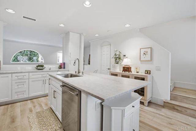Beautifully updated and meticulously maintained, this Carmel Valley townhome offers a perfect blend of style, comfort, and thoughtful upgrades throughout. Step inside to discover Avery Coleman Waterproof Luxury Vinyl flooring in elegant White Shadow Oak that flows seamlessly through the entire home—versatile enough to complement both dark and light furnishings. The fully remodeled kitchen features crisp white cabinetry, “textured leather” granite counters, an enlarged island, and a full suite of high-end KitchenAid appliances from Pirch, including a new cooktop, oven, and microwave. A Bosch dishwasher adds additional convenience. The master bedroom retreat features custom closets and offers exceptional comfort with a blackout window shade, allowing you to customize the perfect sleeping environment. The ensuite bathroom includes a new TOTO toilet and bidet, plus updated lighting designed to evoke the calming movement of waves on water. Additional updated lighting can be found throughout the home, including a beautiful chandelier over the dining table with six Crystal Torpedo Bulbs and a dimmer for bright task lighting, soft ambiance, and everything in between. The guest bath also features upgraded lighting and tasteful finishes. Modern essentials have been taken care of as well, including a new hot water heater, new garbage disposal, high-capacity YORK heating and cooling system, and shutters throughout the home. The master bath features a beautifully updated tub, shower, and glass enclosure installed by Bath Planet, offering a clean, modern look. For added value, the attached garage boasts custom cabinets and Perkins Custom Polyaspartic floor coating, providing industrial-level durability, a glossy seamless appearance, and quick-curing technology ideal for everyday use. Located in a highly desirable community near top-rated schools, shopping, dining, and easy freeway access, this home shows true pride of ownership from the moment you walk in. This move-in-ready residence is truly special—updated, stylish, and exceptionally cared for. A rare find in a prime Carmel Valley location. Welcome Home!